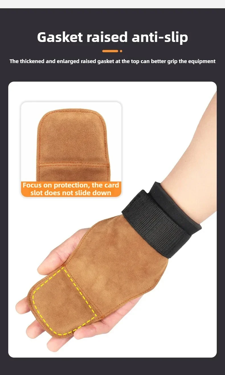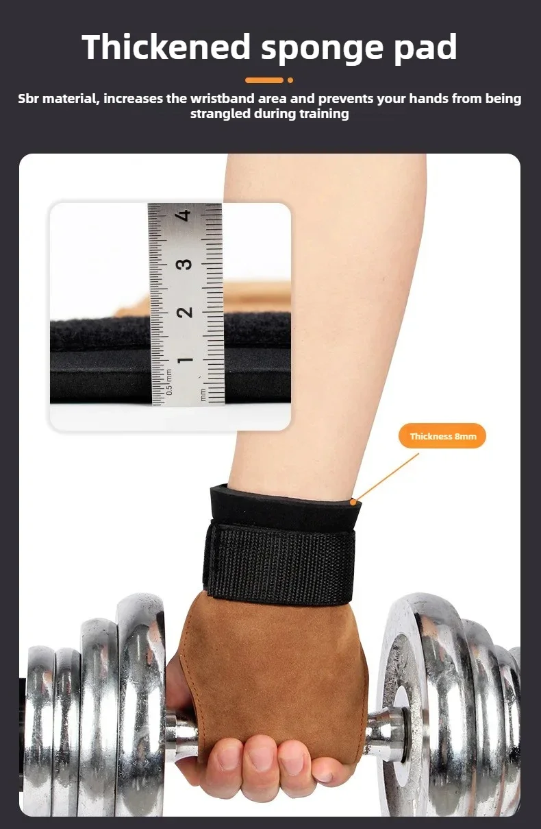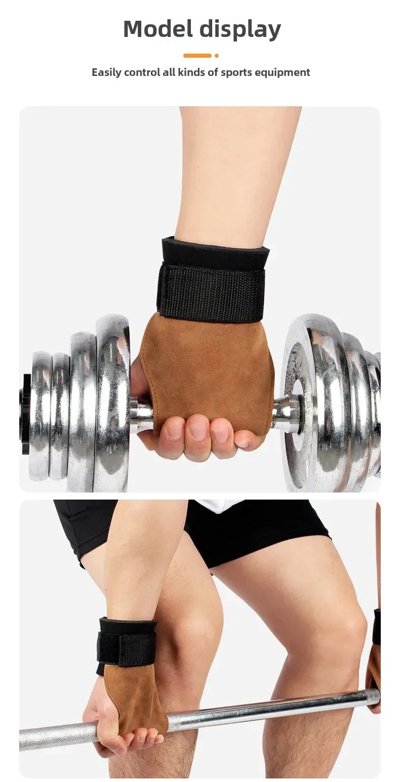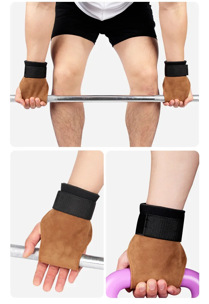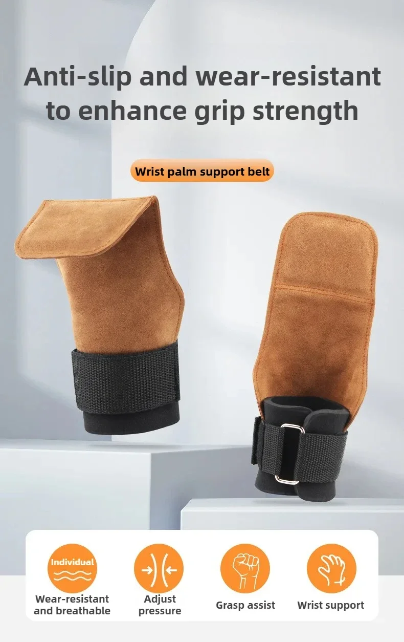 2Pcs Cowhide Gym Gloves Grips Anti-Skid Weight Power Booster Belt Lifting Pull-up Deadlift Workout Fitness Palm Training Guards
