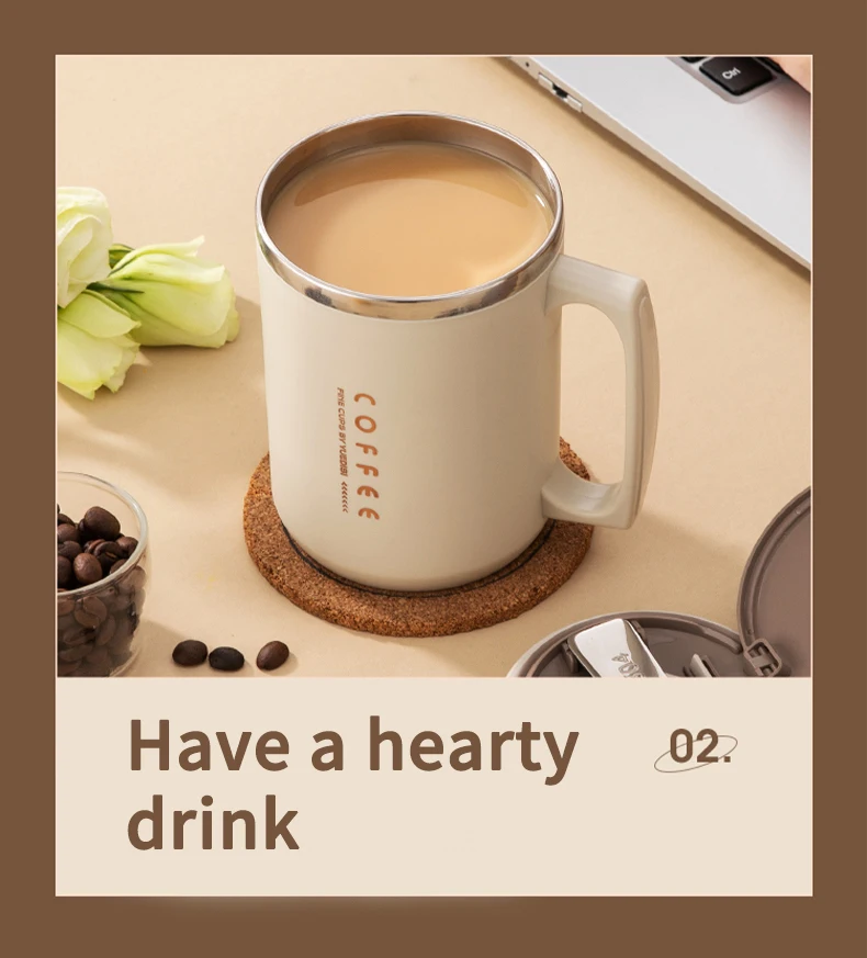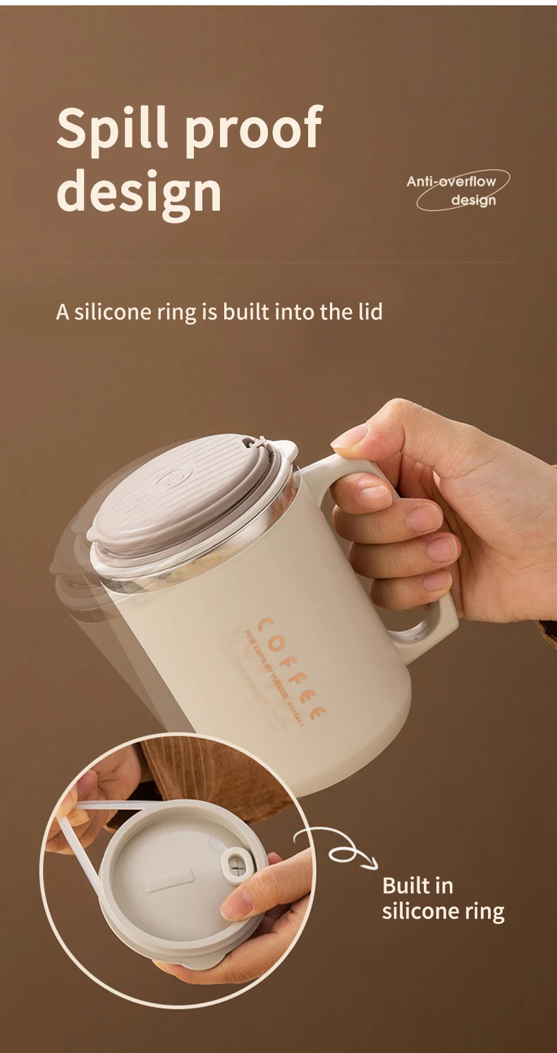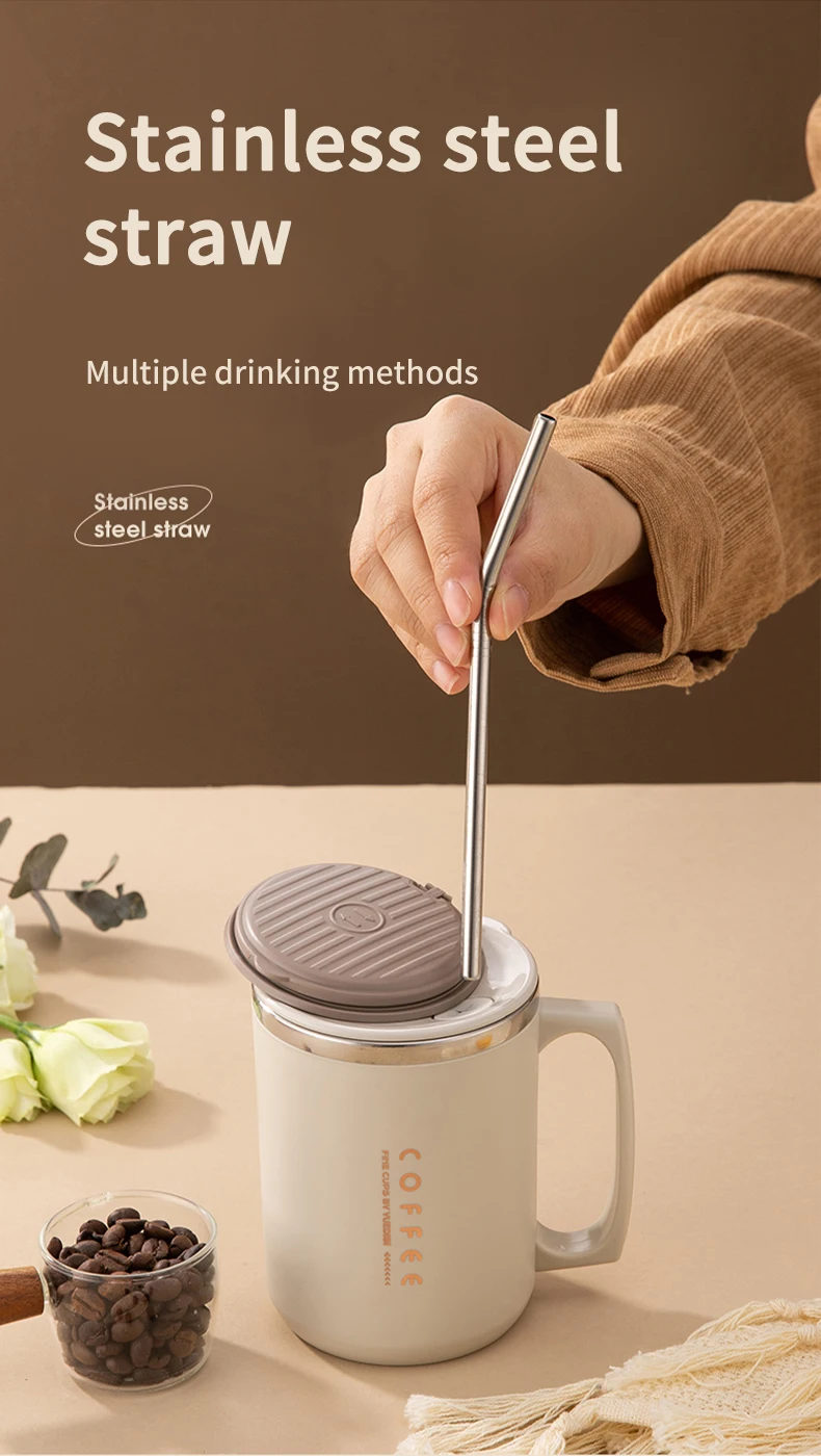 480ML Double-Wall Insulated Mug With Spoon&Straw 304 Stainless Steel Coffee Cup Sealed Water Cup Reusable Drinkware For Student