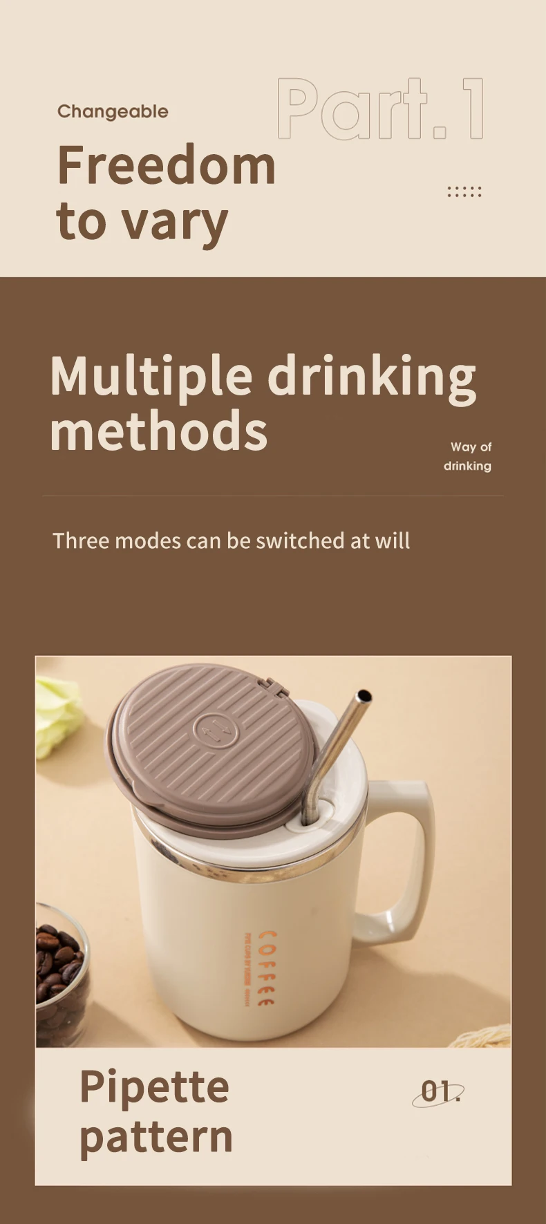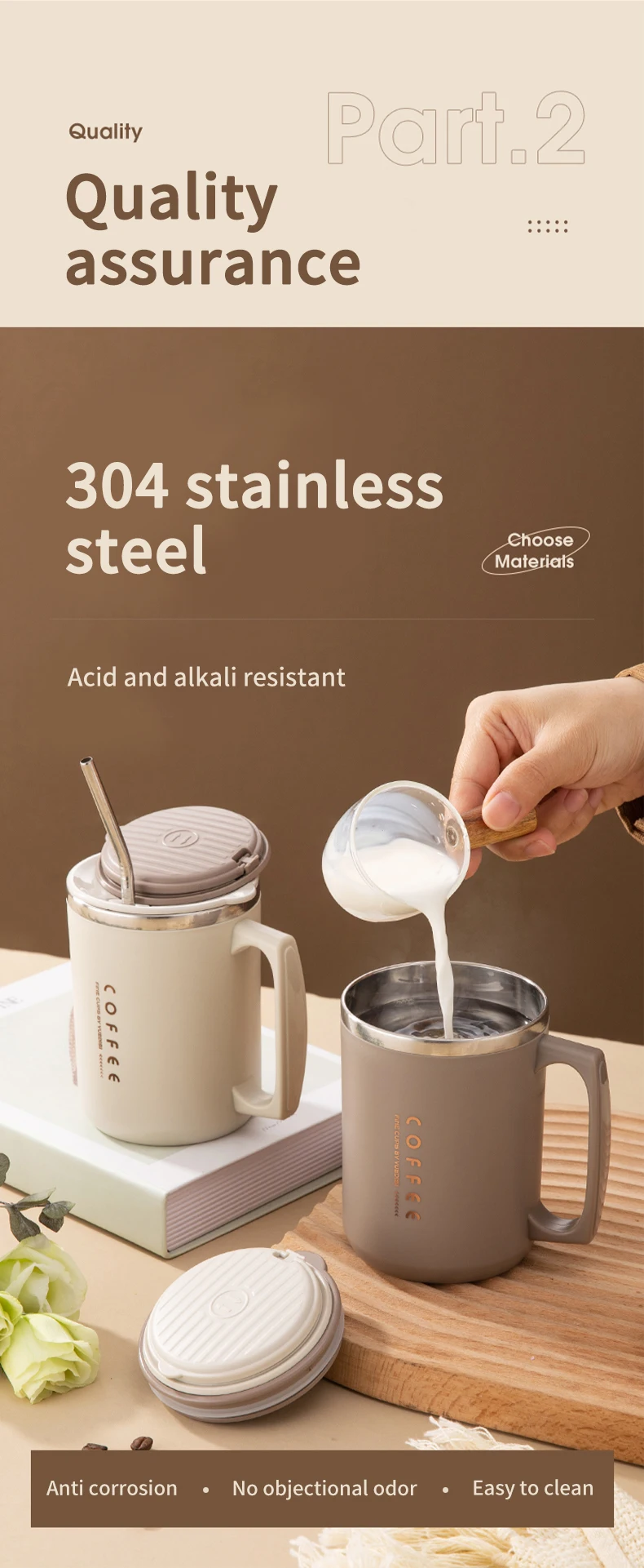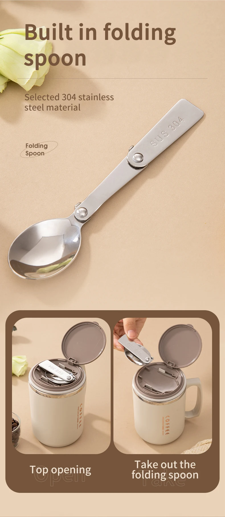 480ML Double-Wall Insulated Mug With Spoon&Straw 304 Stainless Steel Coffee Cup Sealed Water Cup Reusable Drinkware For Student