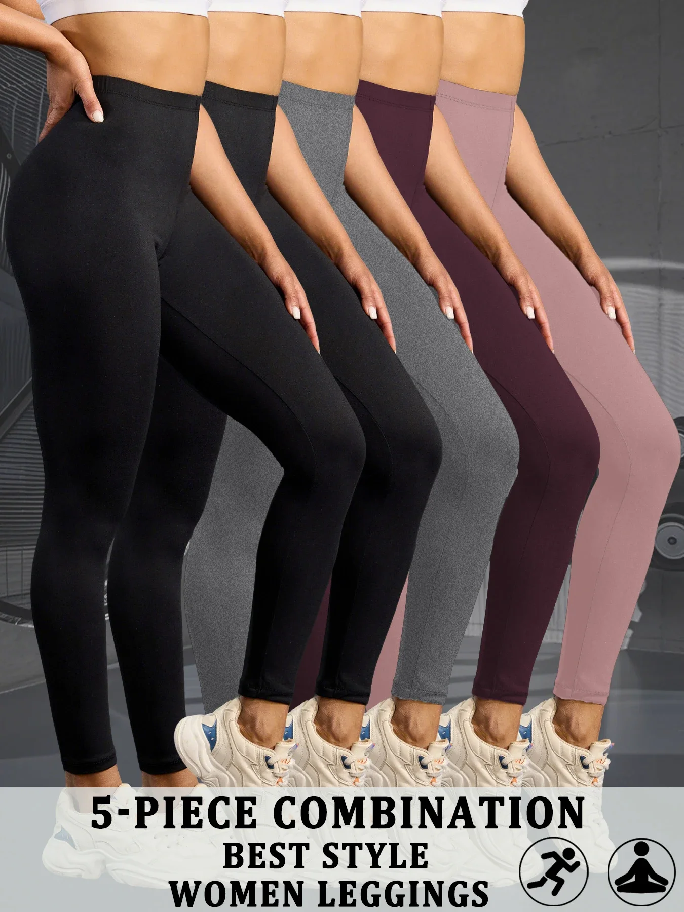 5 Pack Women's Super Soft Leggings High Elasticity No See Through Workout Yoga Running Athletic Push Up Gym Fitness Leggings