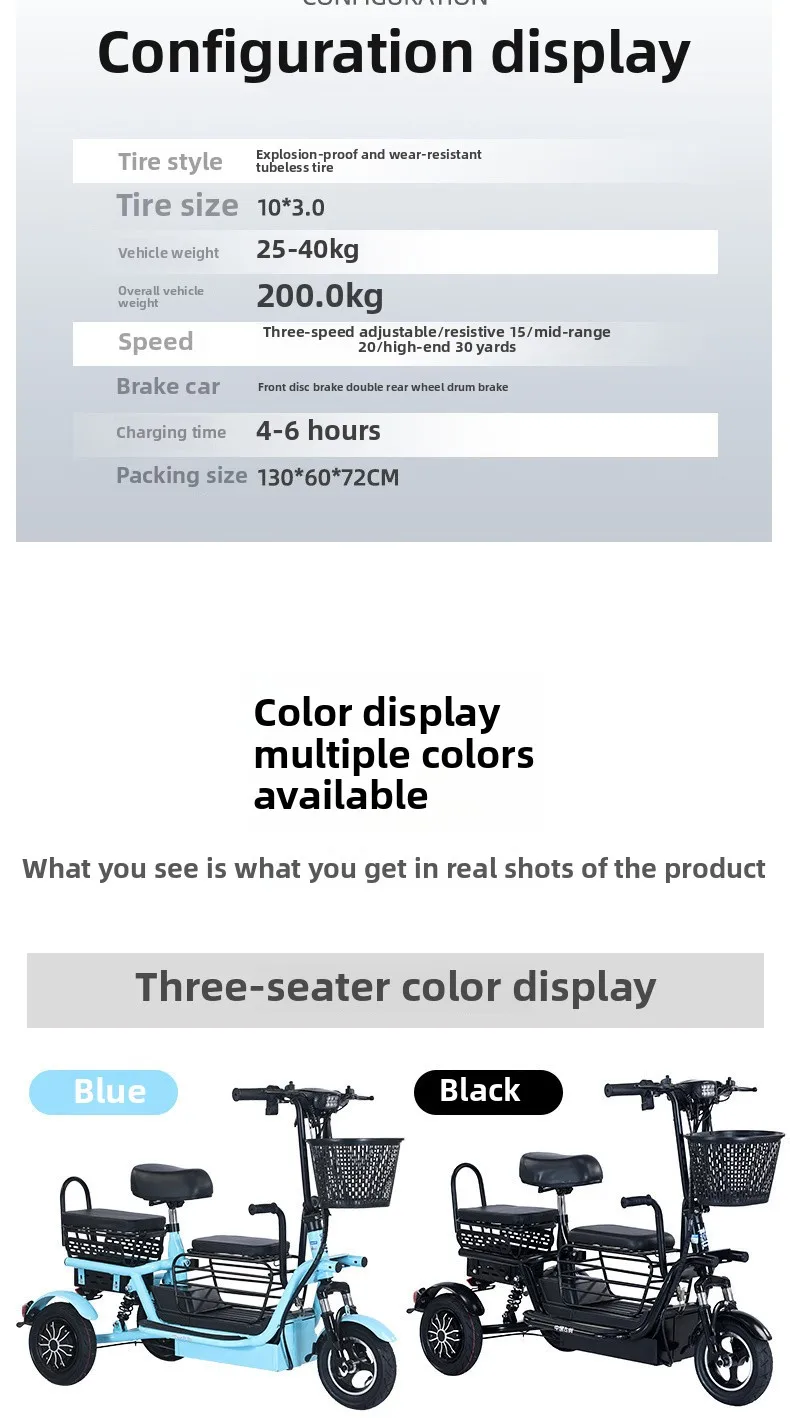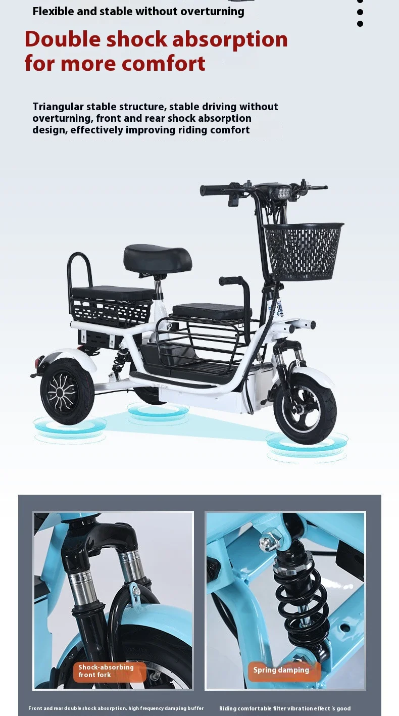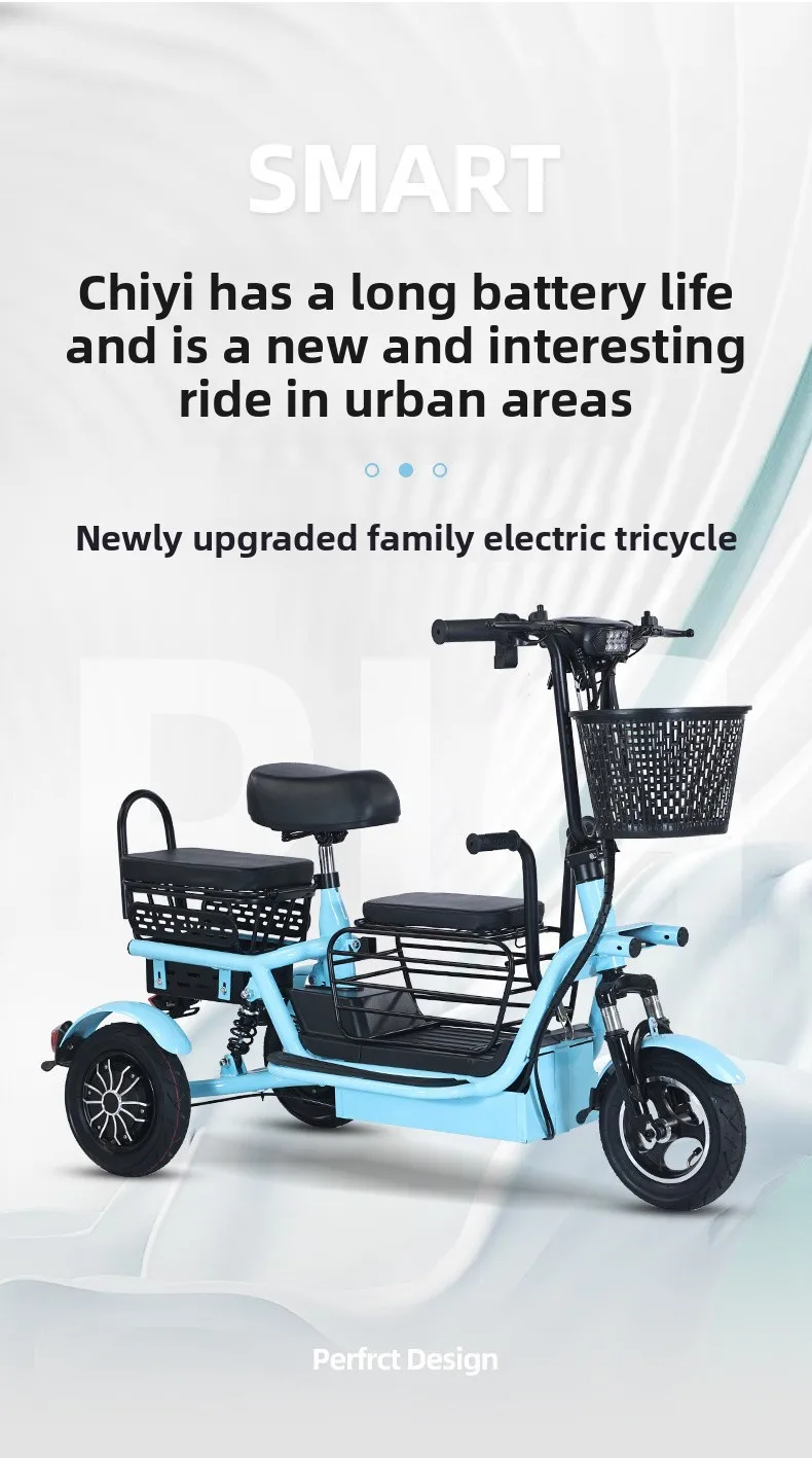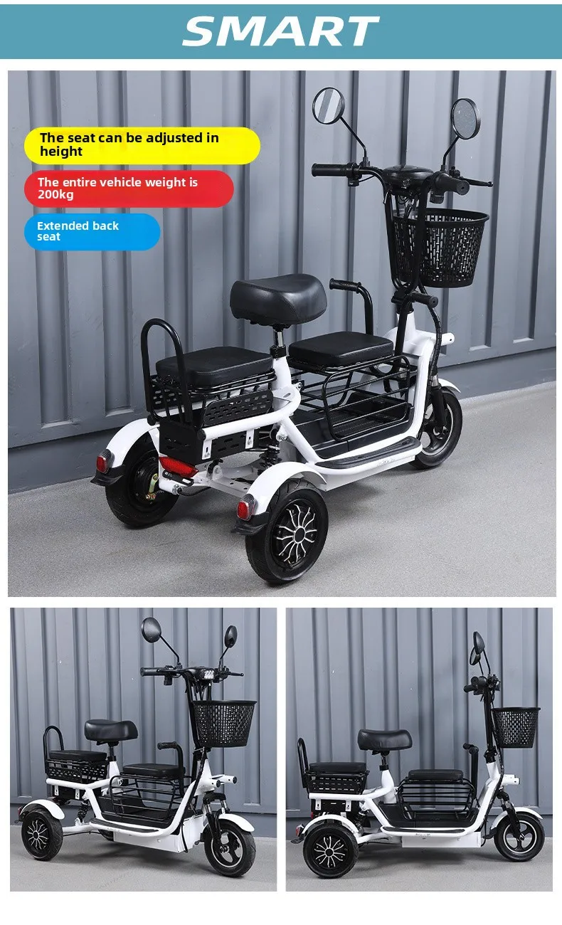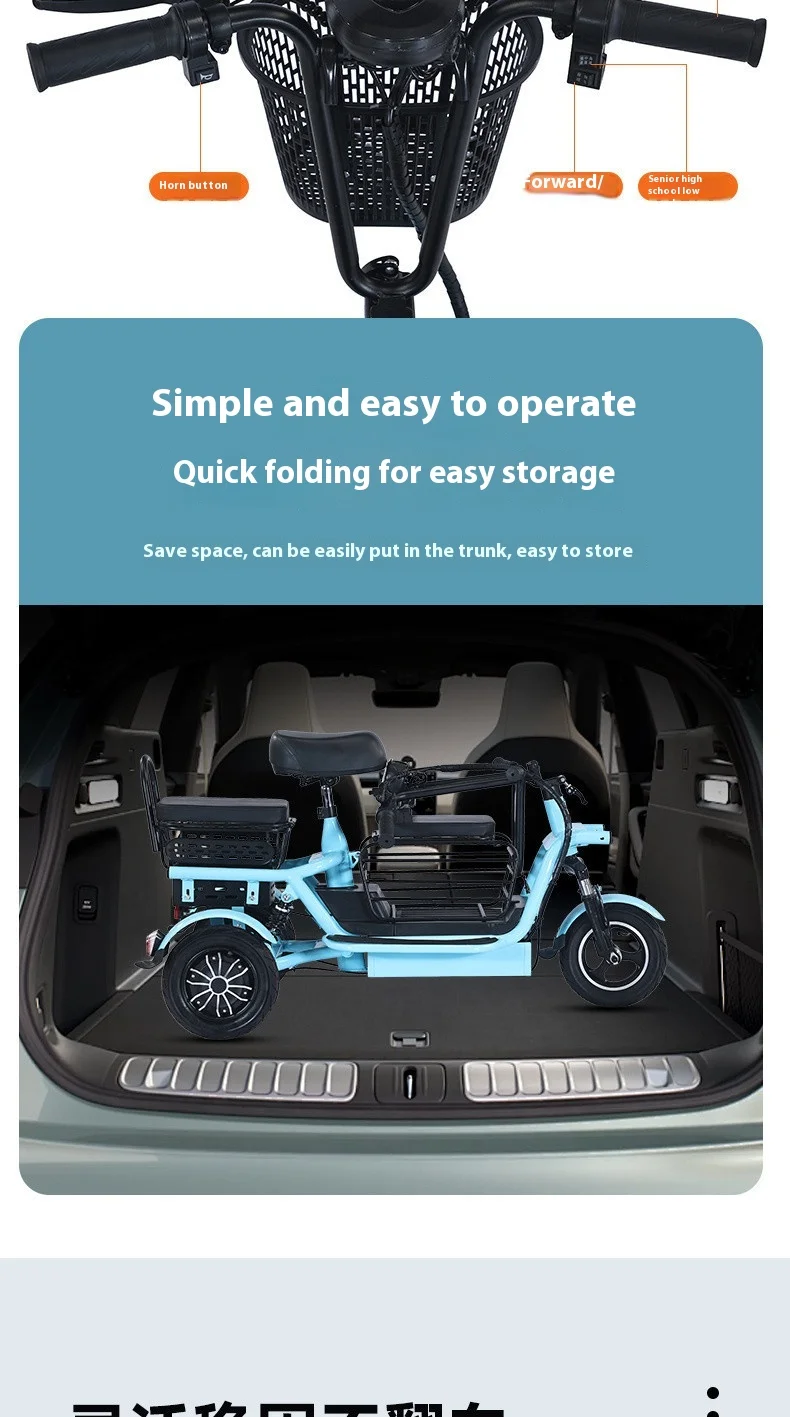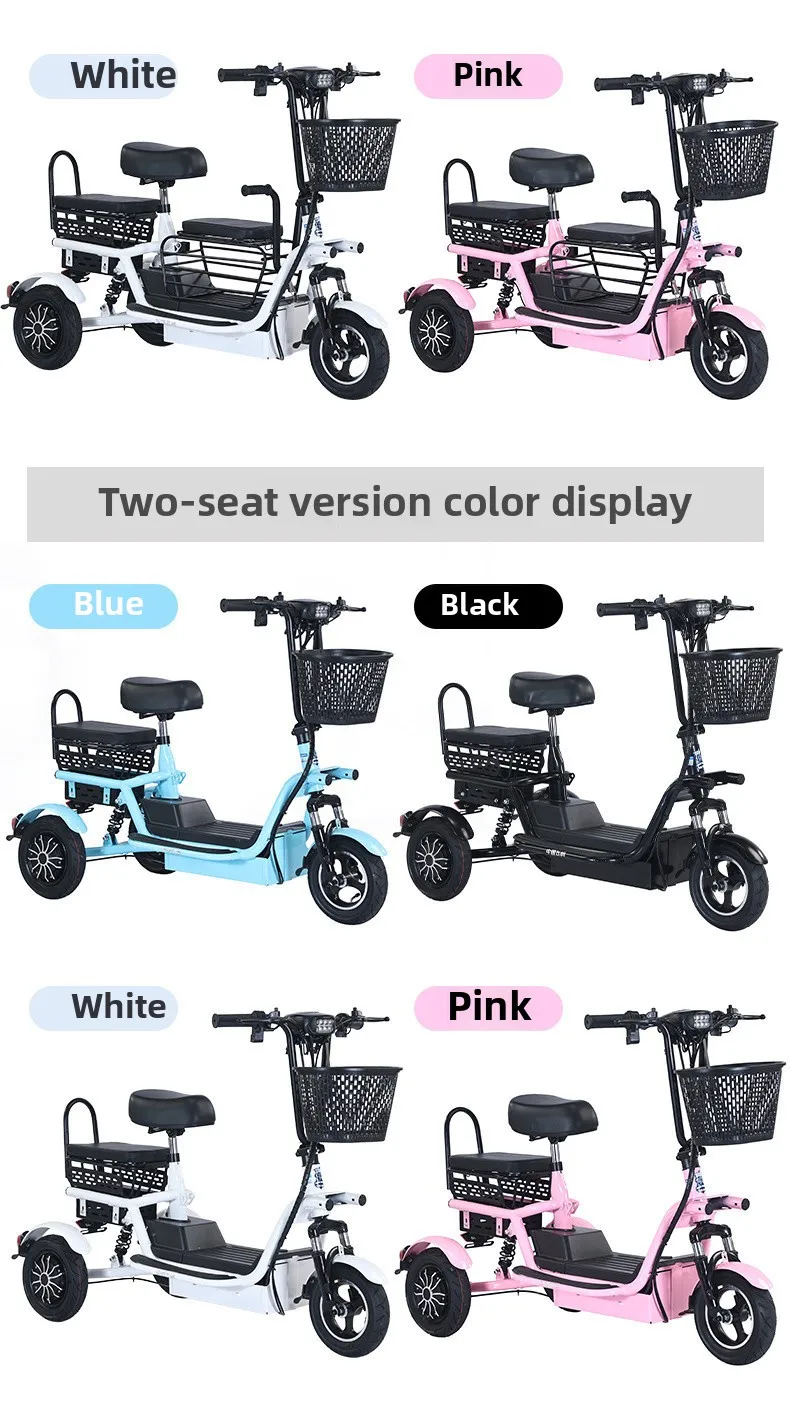 800W48V 70km folding electric tricycle small leisure vehicle for adults to ride three people portable battery car for home use