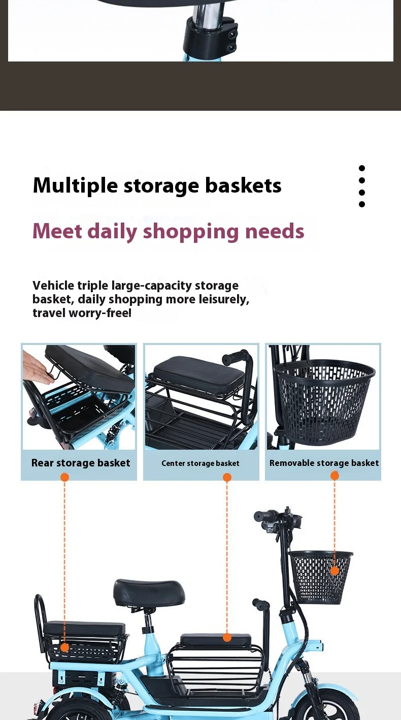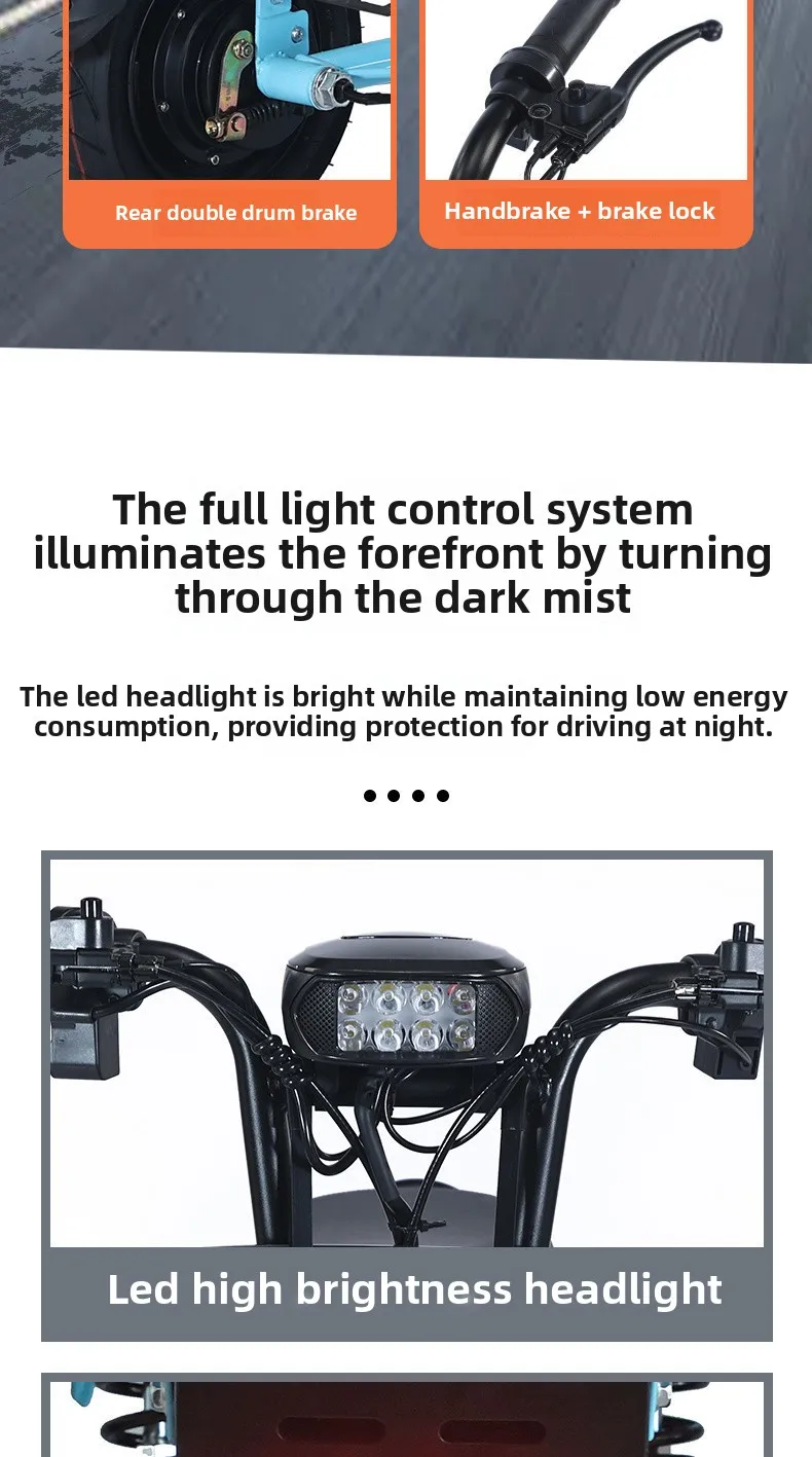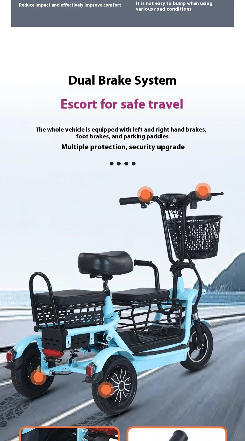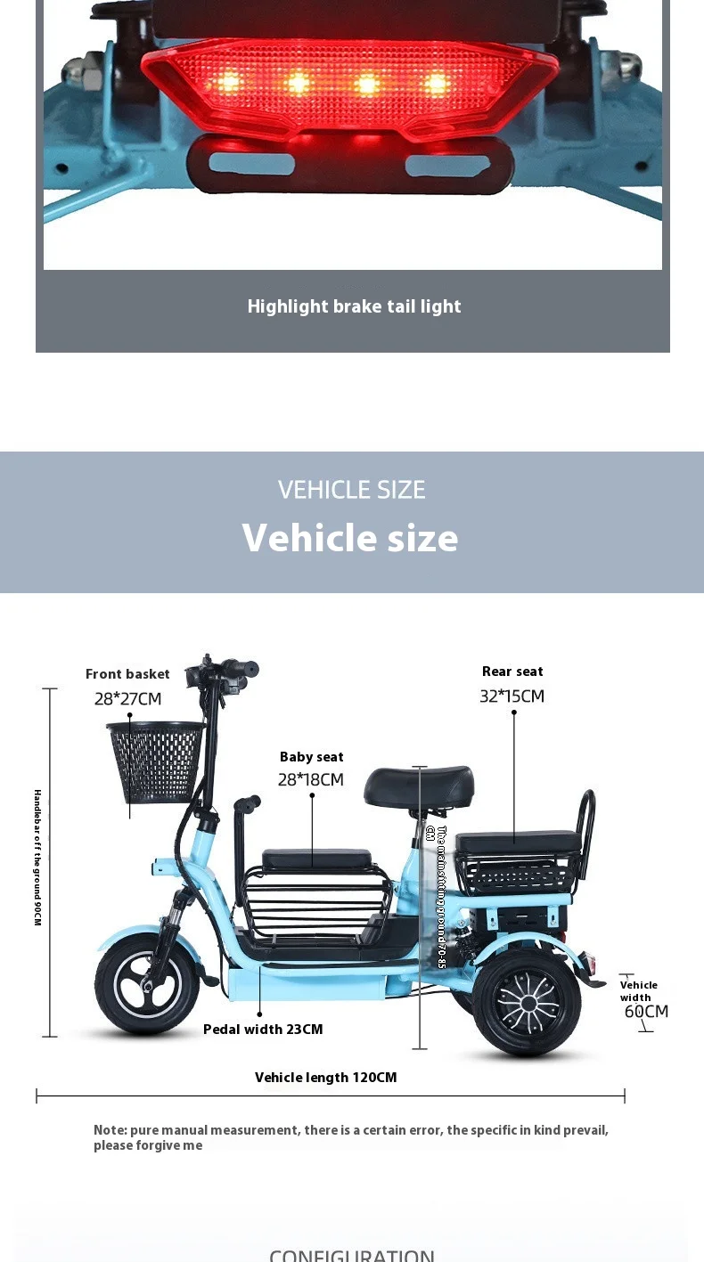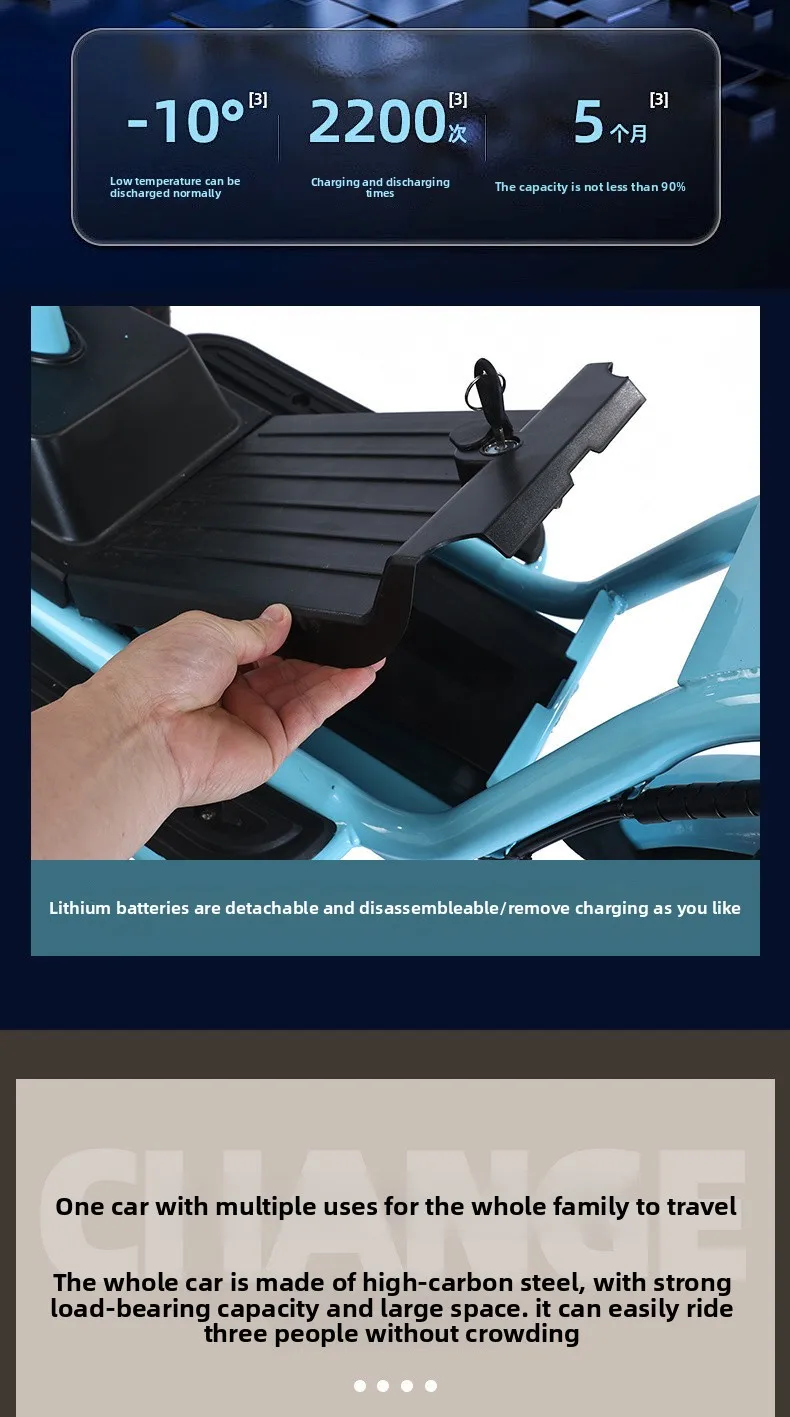 800W48V 70km folding electric tricycle small leisure vehicle for adults to ride three people portable battery car for home use