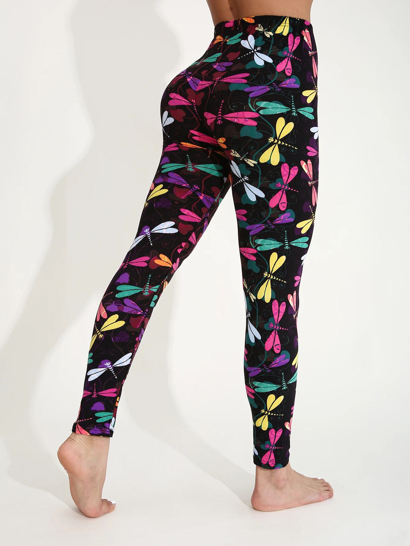 Autumn Winter 1PACK Women's Black Bottom Colorful Dragonfly Pattern Sexy Tight Legging Casual Sports Elegant Fitness Yoga Pants