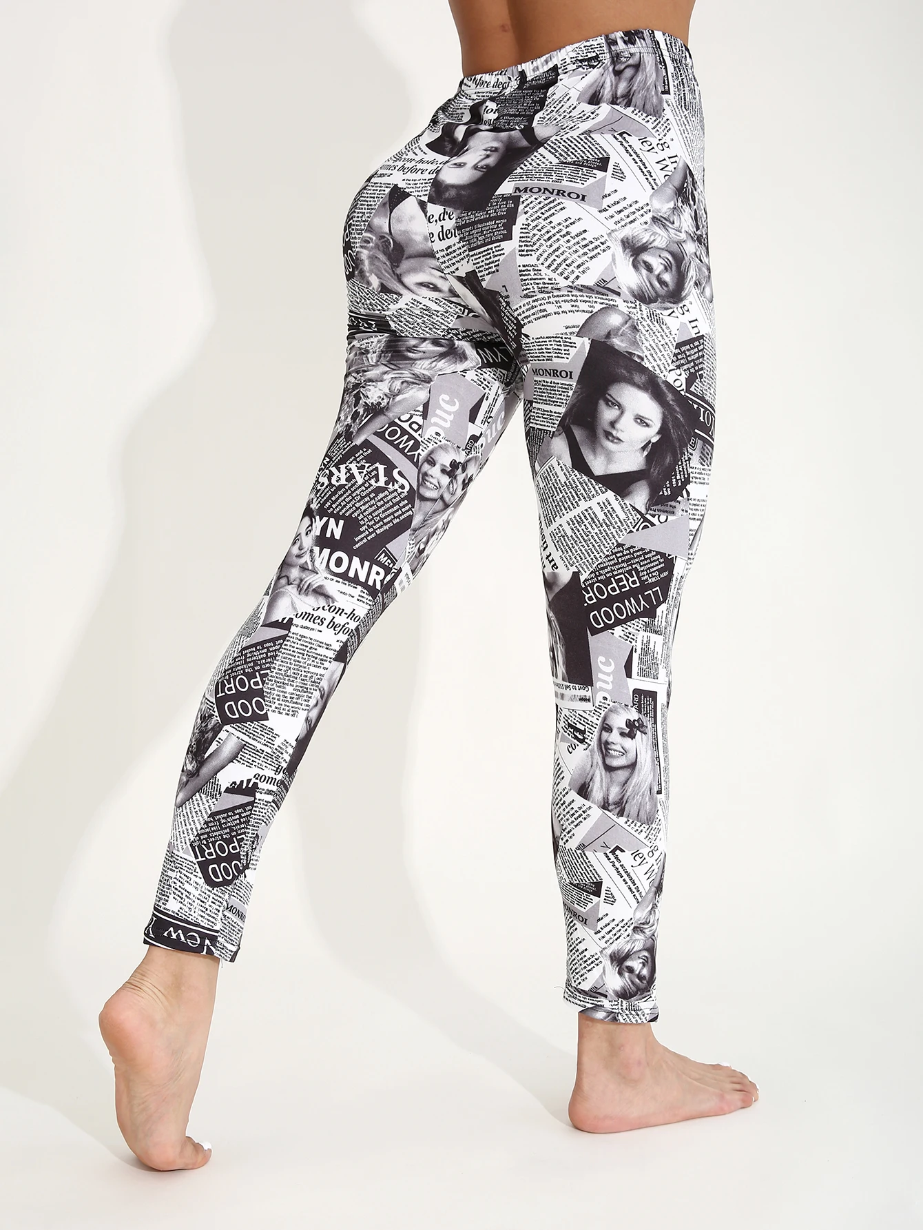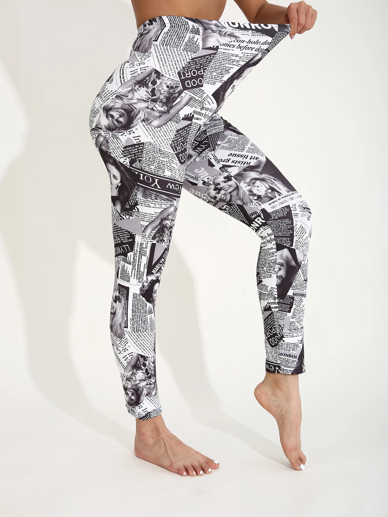 Autumn Winter 1PACK Women's Newspaper Portrait Pattern Sexy Tight Legging Casual Sports Elegant Fitness Yoga Pants