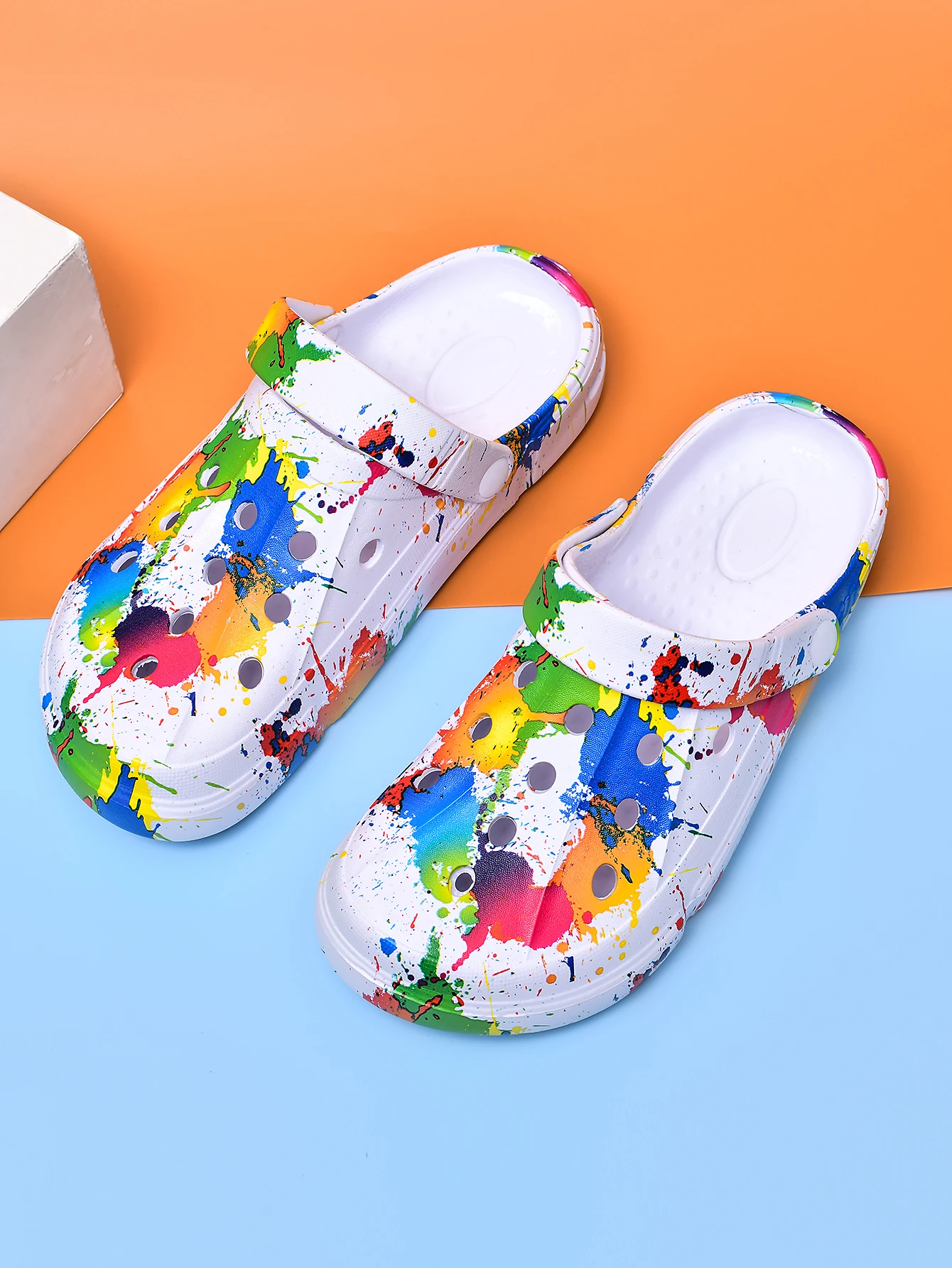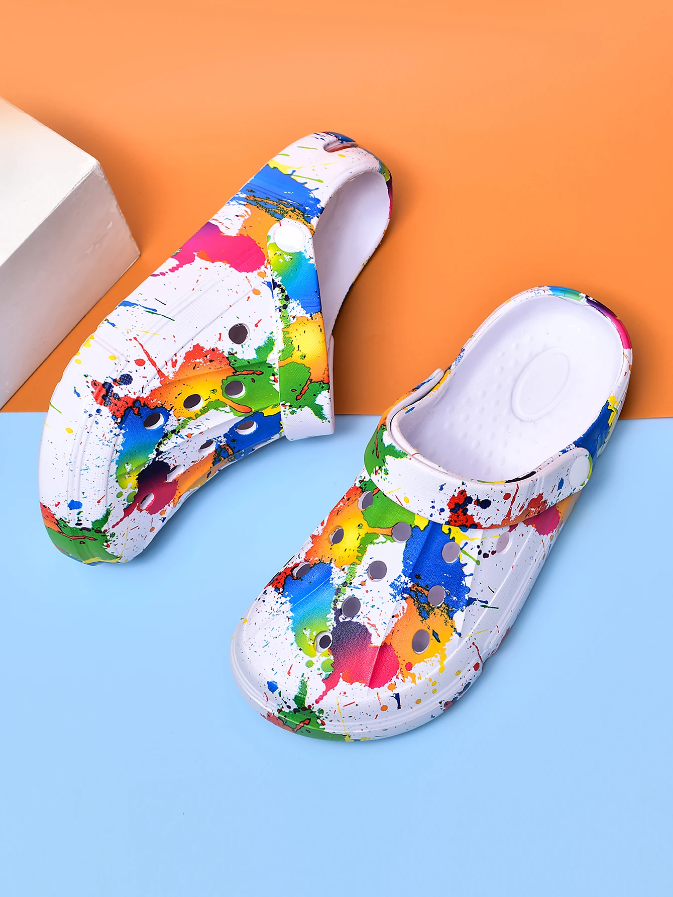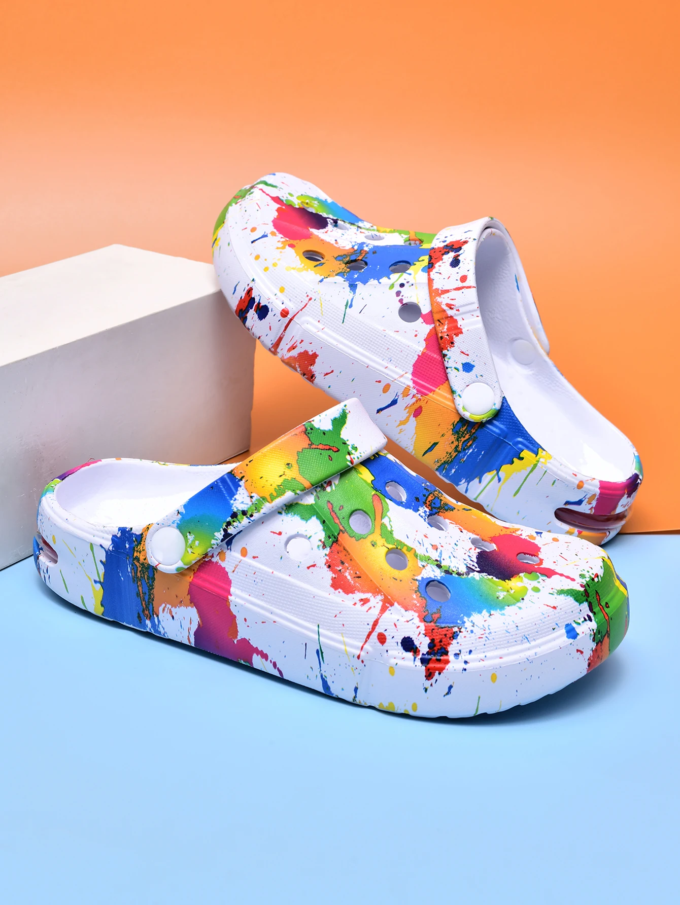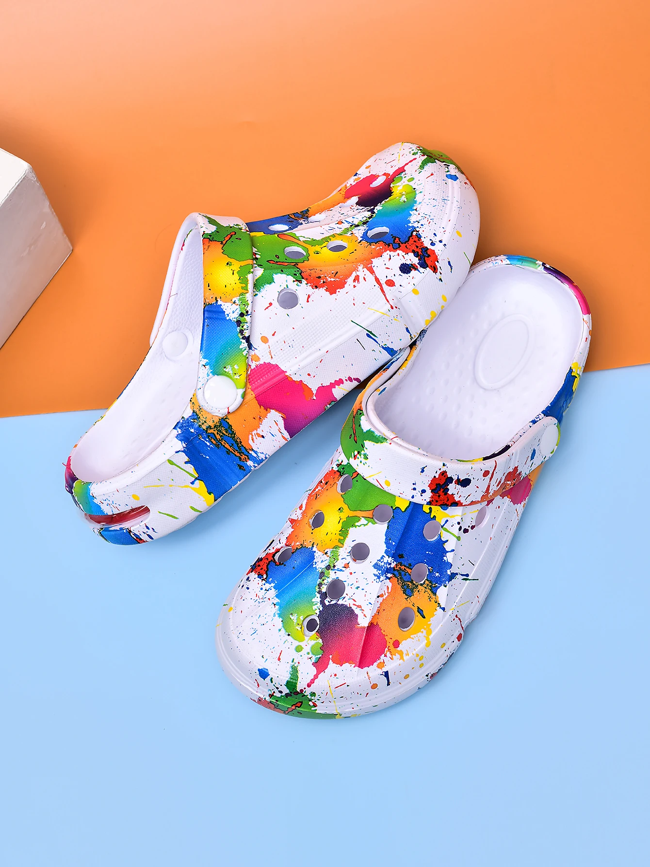 Couple Style Men's and Women's Clogs Sandals Slippers Inkjet Pattern Air Cushion Breathable Beach Sandals Outdoor Thick-Soled Mu