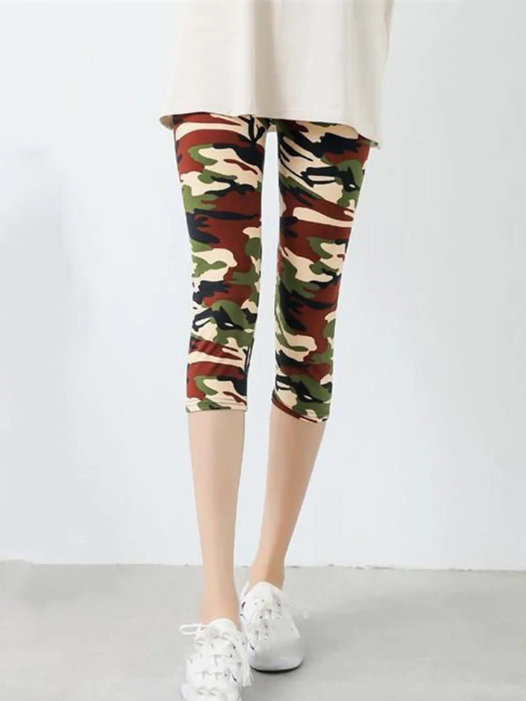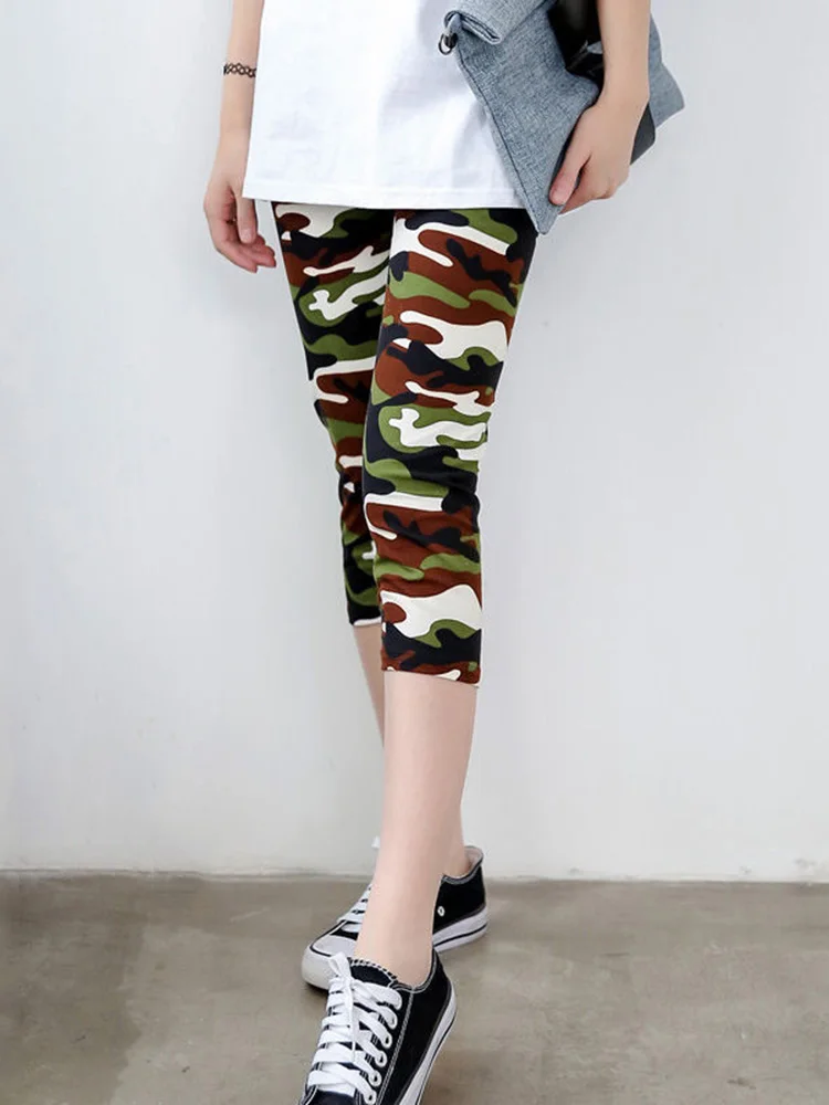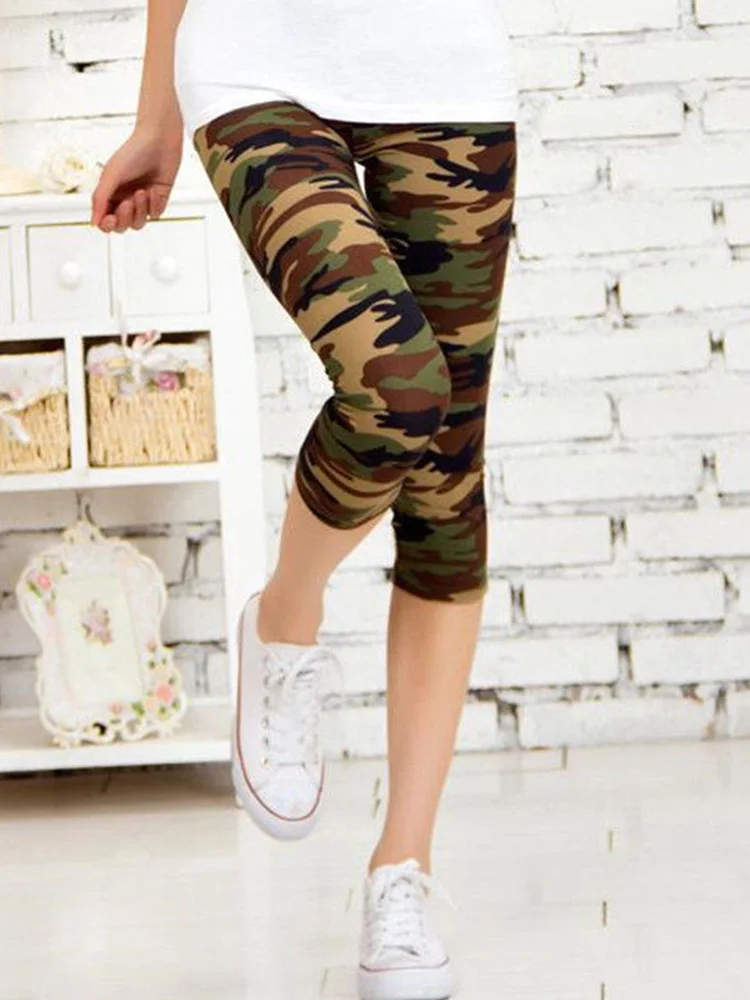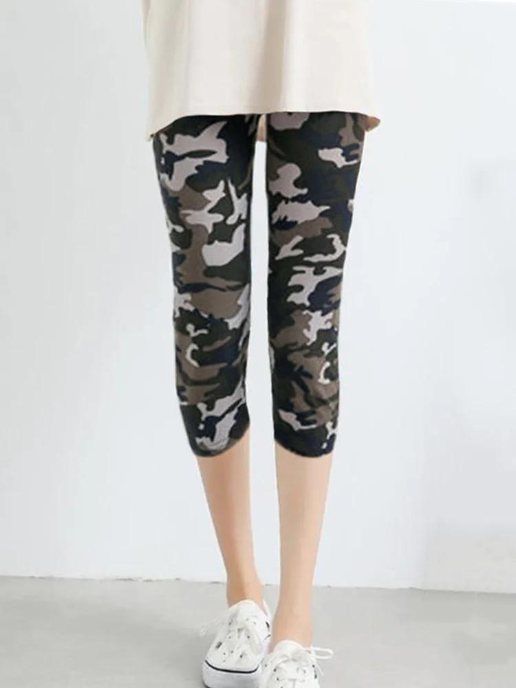 CUHAKCI Fitness Leggins Polyester Capris Workout Trousers Camouflage Printed Leggings Sexy Women Lady Army Green High Elastic