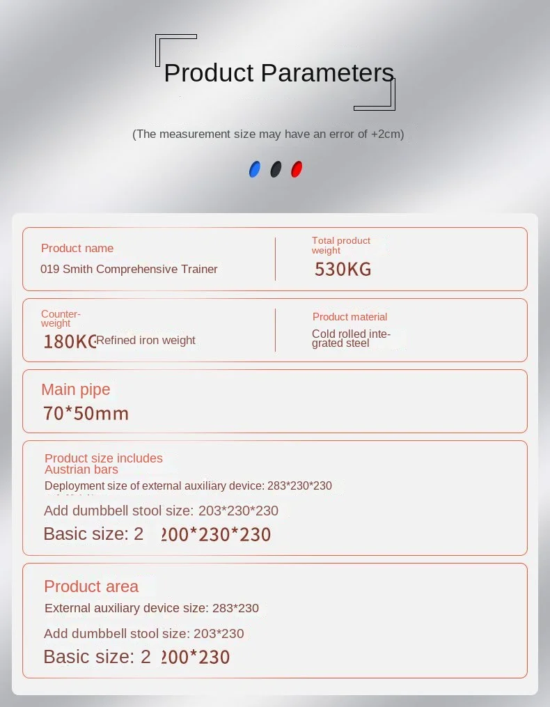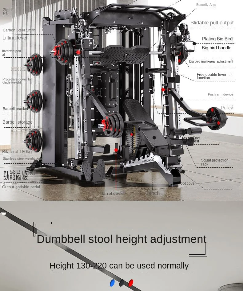 Product name: Gantry Rack Fitness Equipment Household Smith Machine Squat Push Rack Multi-functional Set equipment Comprehensive Trainer