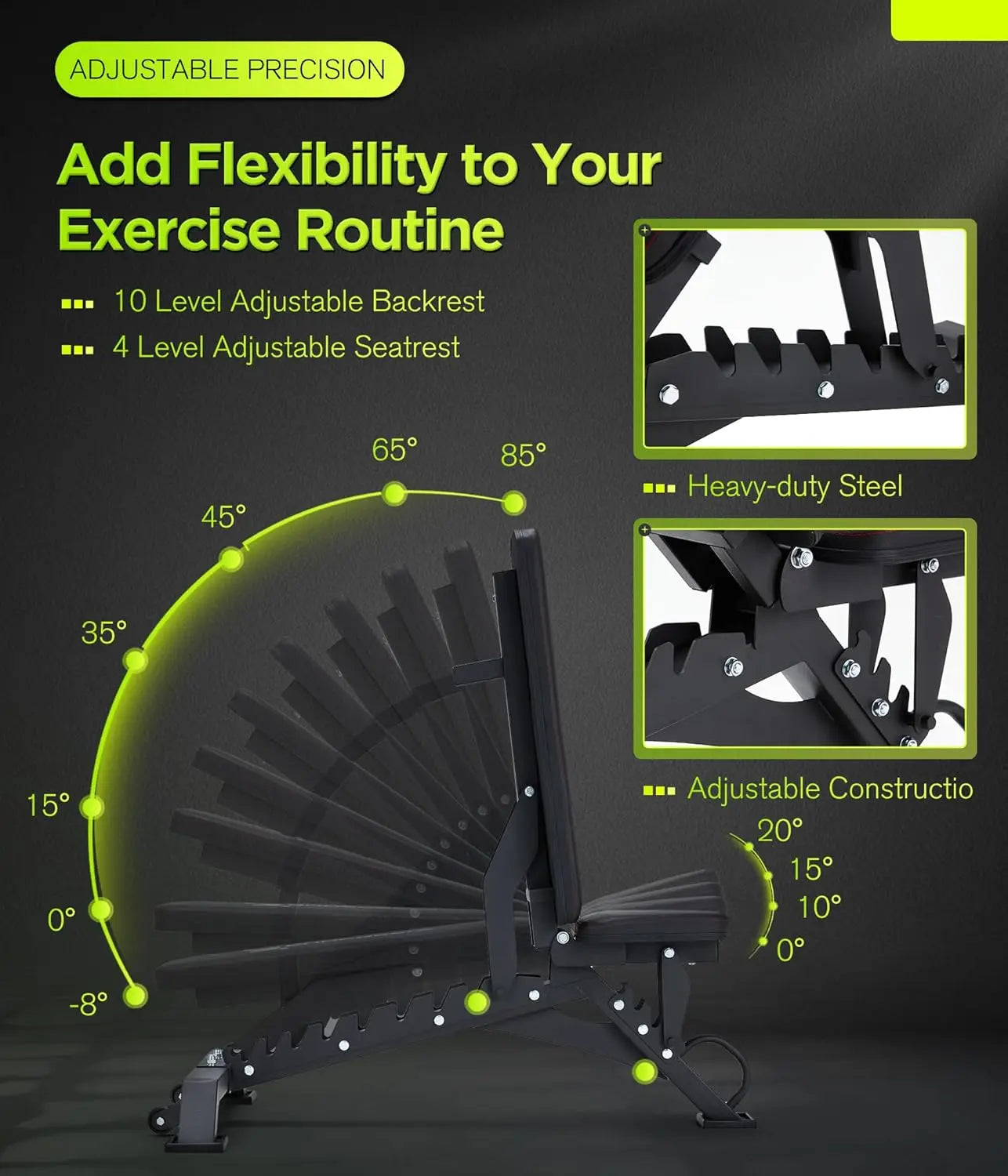 Heavy Duty Weight Bench 1000LB Capacity Adjustable FID Workout Bench Weight Lifting Bench Press for Gym and Home Gym