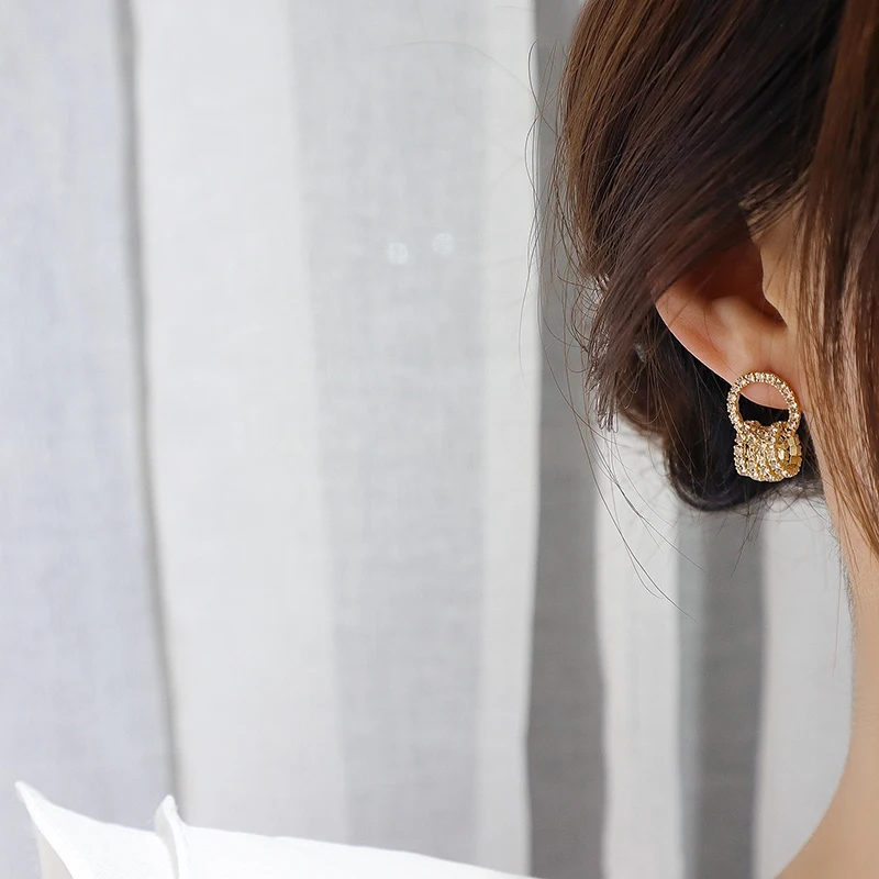 Korean Super Shining Buckle Circle Earrings for Women 14k Real Gold Elegant AAA Zirconia Stud Earring Birthday Gift Brincos
