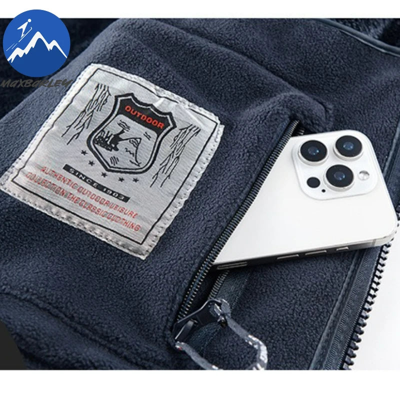 Maxbarley Winter Sportswear Set Mens Retro Training Thick Fleece Jacket + Pants Two Piece Set Casual Ski Running Tracksuit Suit