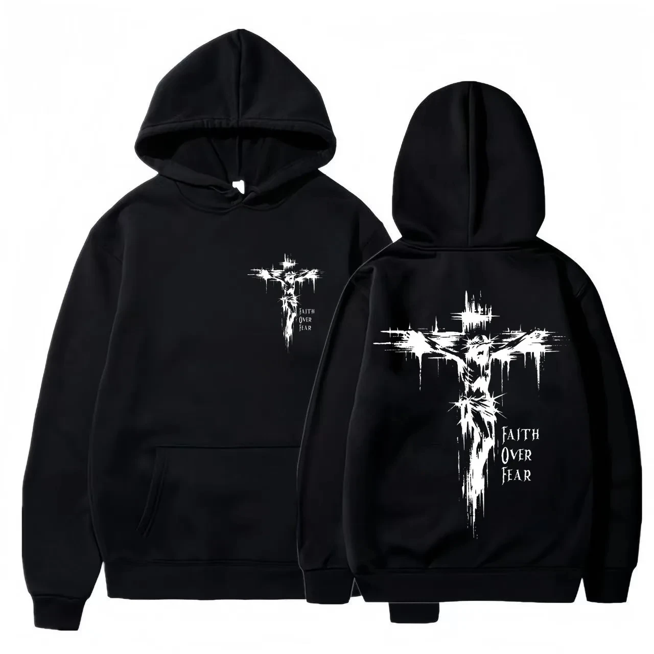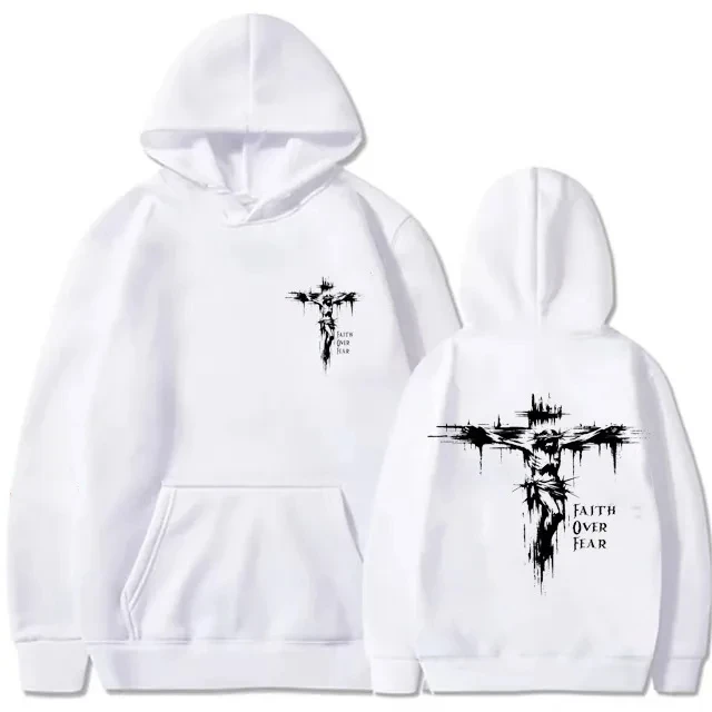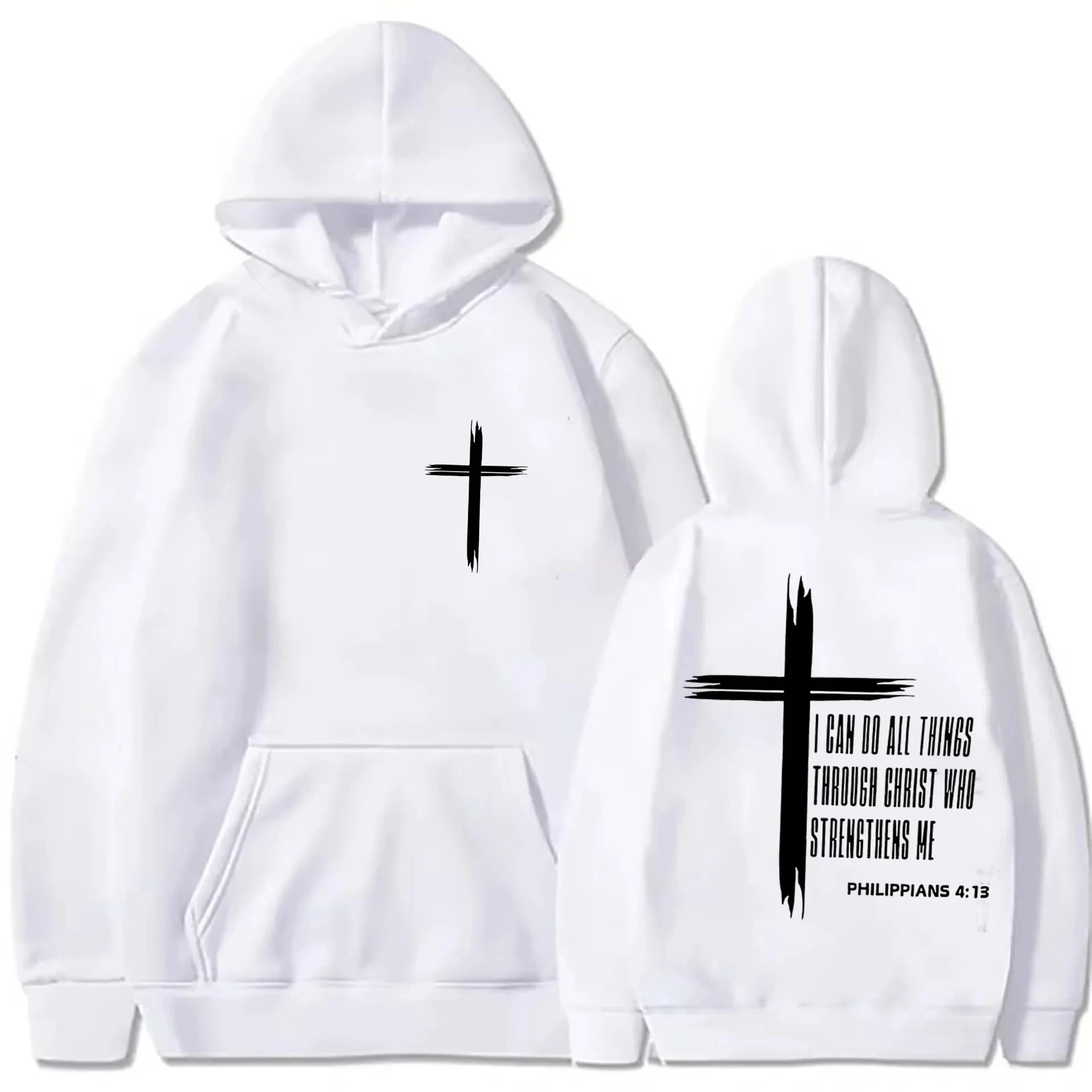 Men's hoodie with religious cross and motivational text prints pullover style autumn fashion hooded hoodie casual hoodie unisex