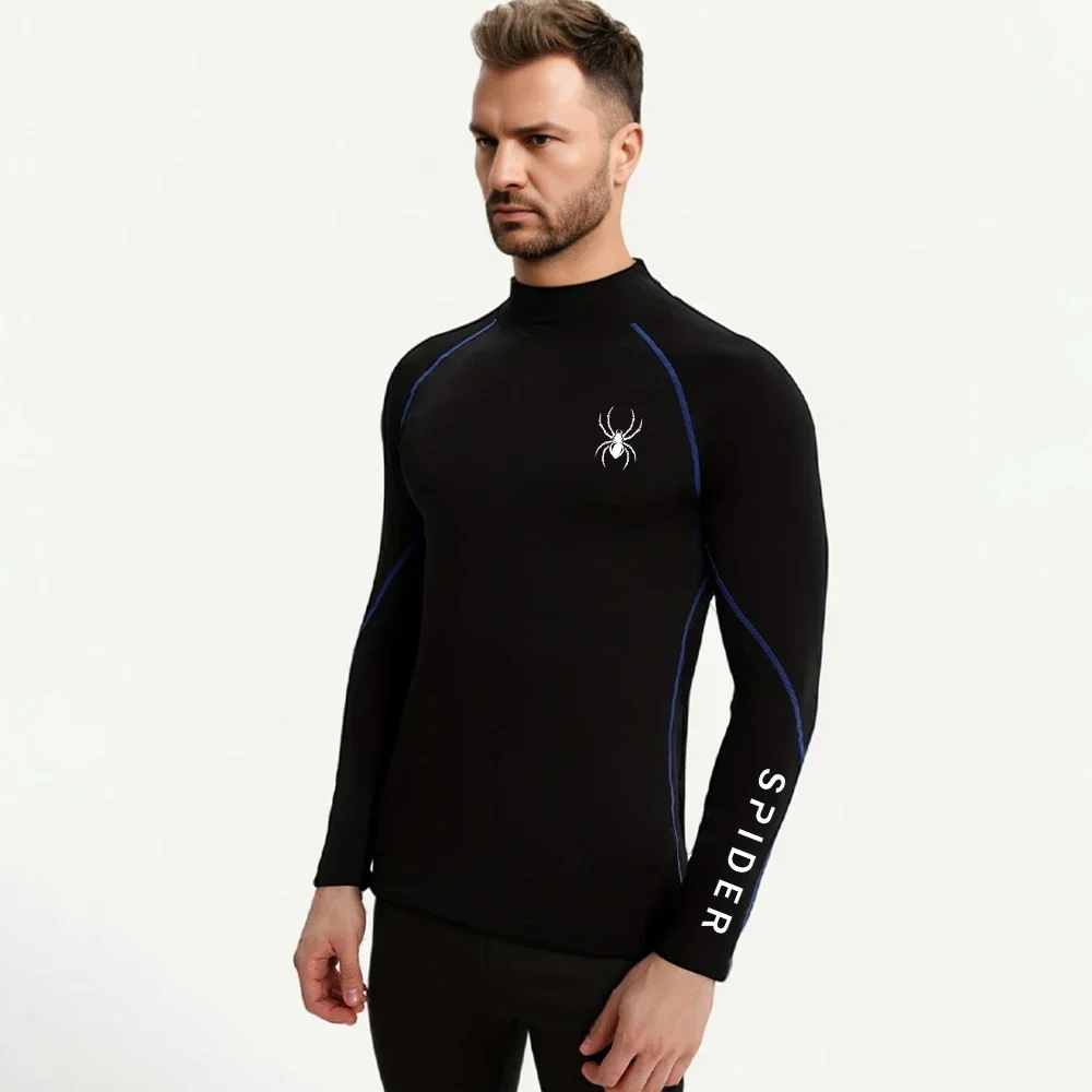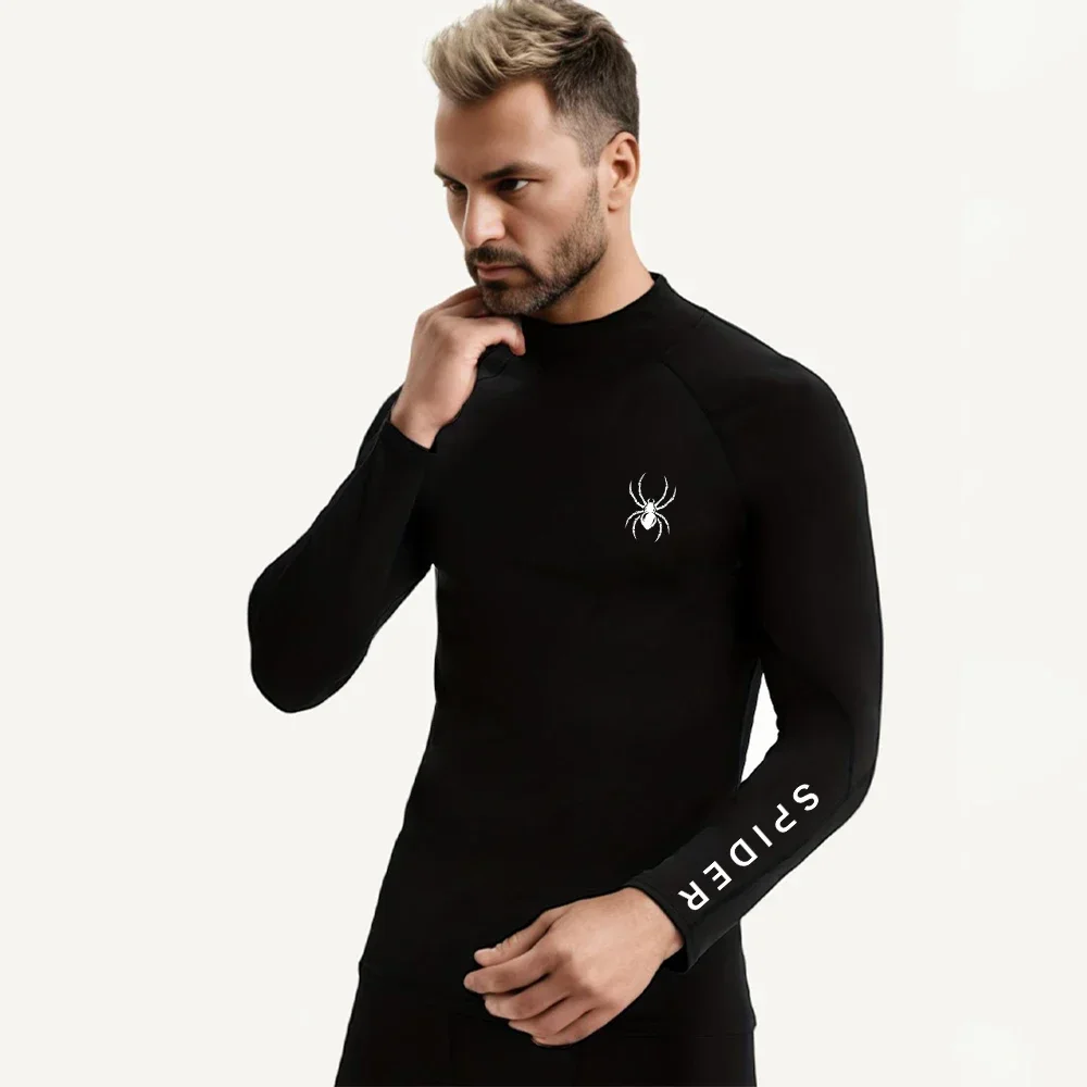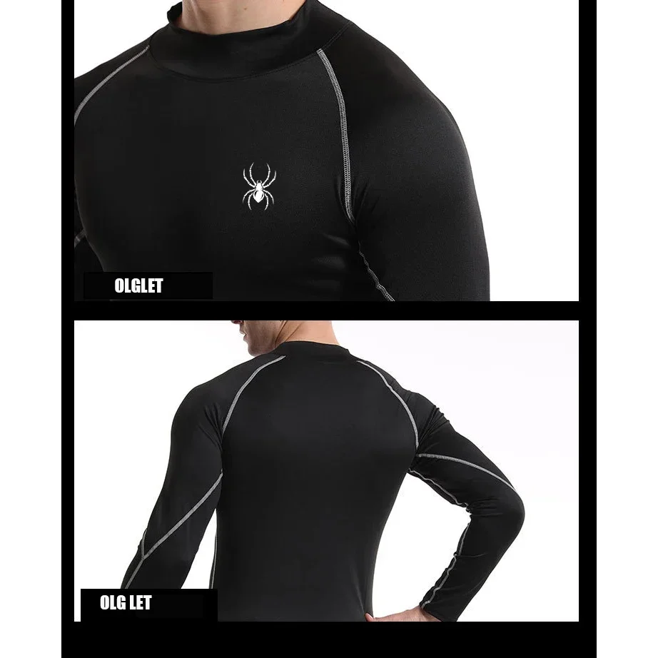 Mens Running T-shirts Compression Long Sleeve Sport Shirts Spider Printing Fitness Training Jogging Gym Quick Dry Tee