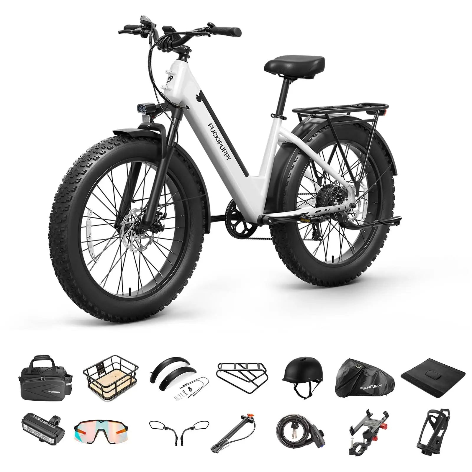 PUCKIPUPPY Samoyed Electric Bike 960W Peak 28MPH Commuter E-Bike All Terrain 26" Fat Tire Electric Bicycle with 2-Year Warranty