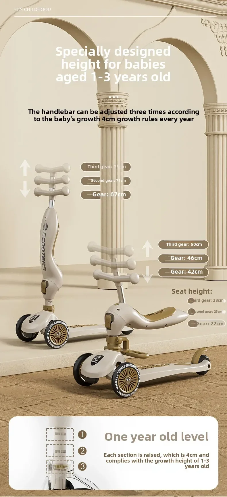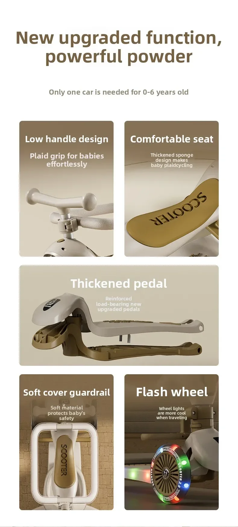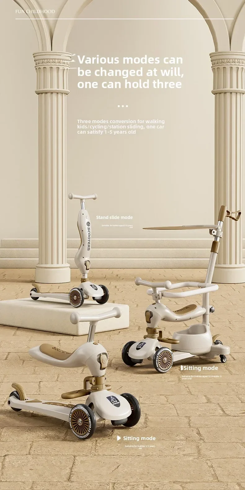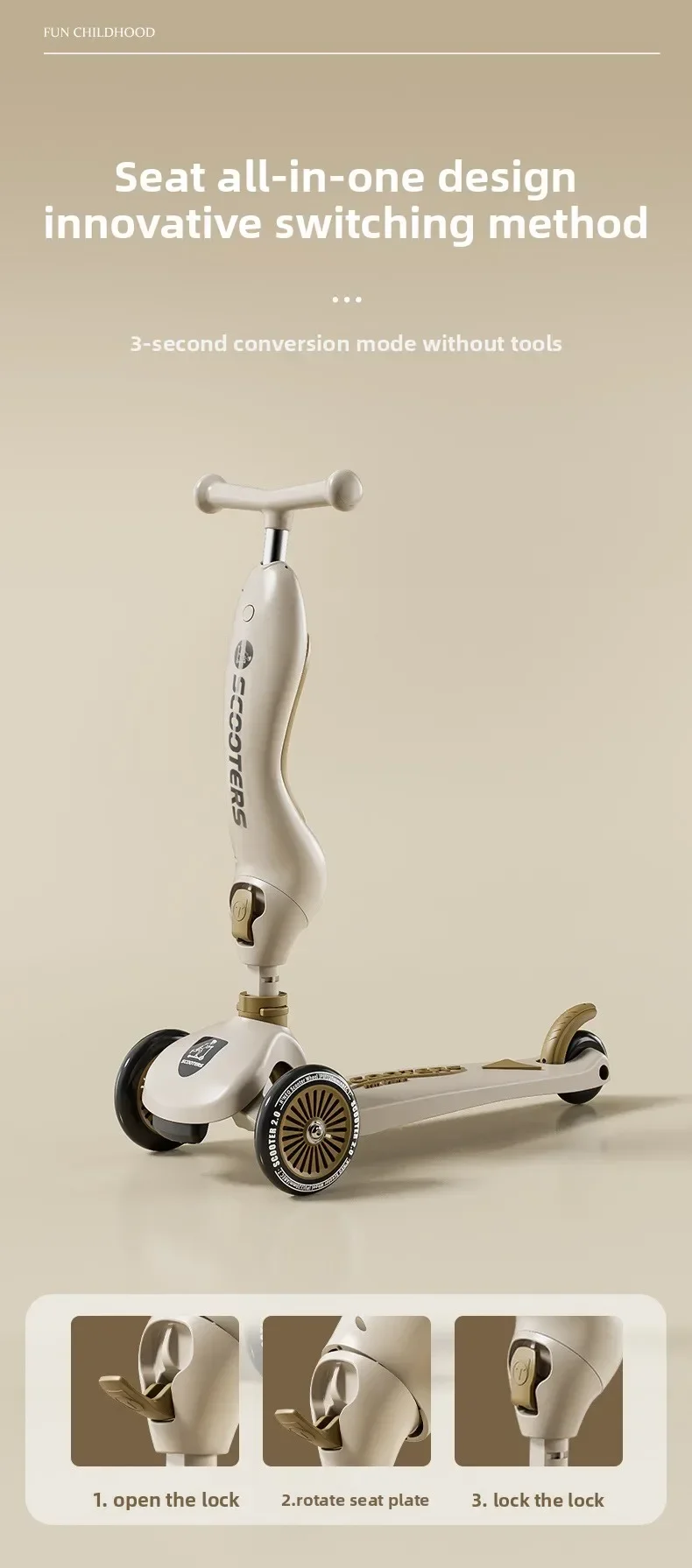 Scooter Voor Kinderen Vouwen 3 Wiel Skateboard Driewieler Baby Draagbare Kinderwagen Hoverboard Speelt Muziek Balans Multimodaal