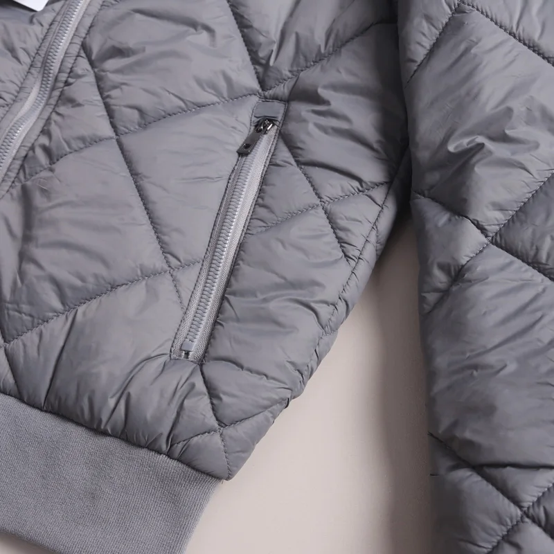 Featuring a stylish quilted diamond pattern and a trendy baseball collar, this jacket adds a touch of urban flair to any outfit.