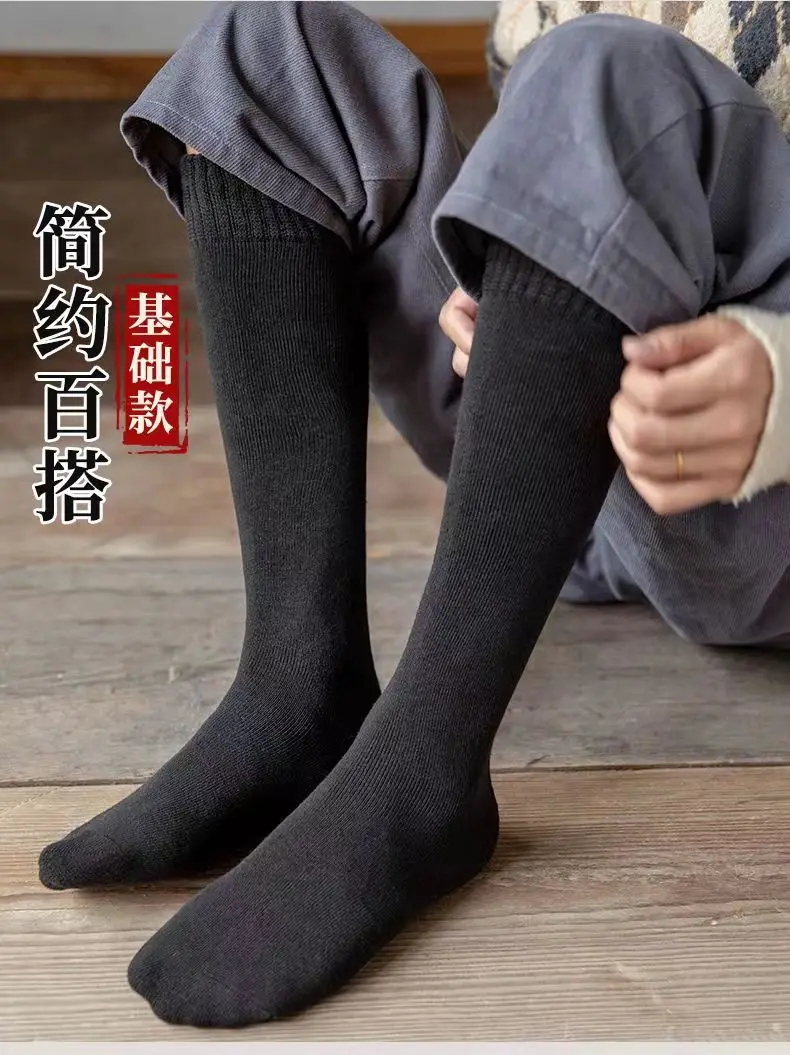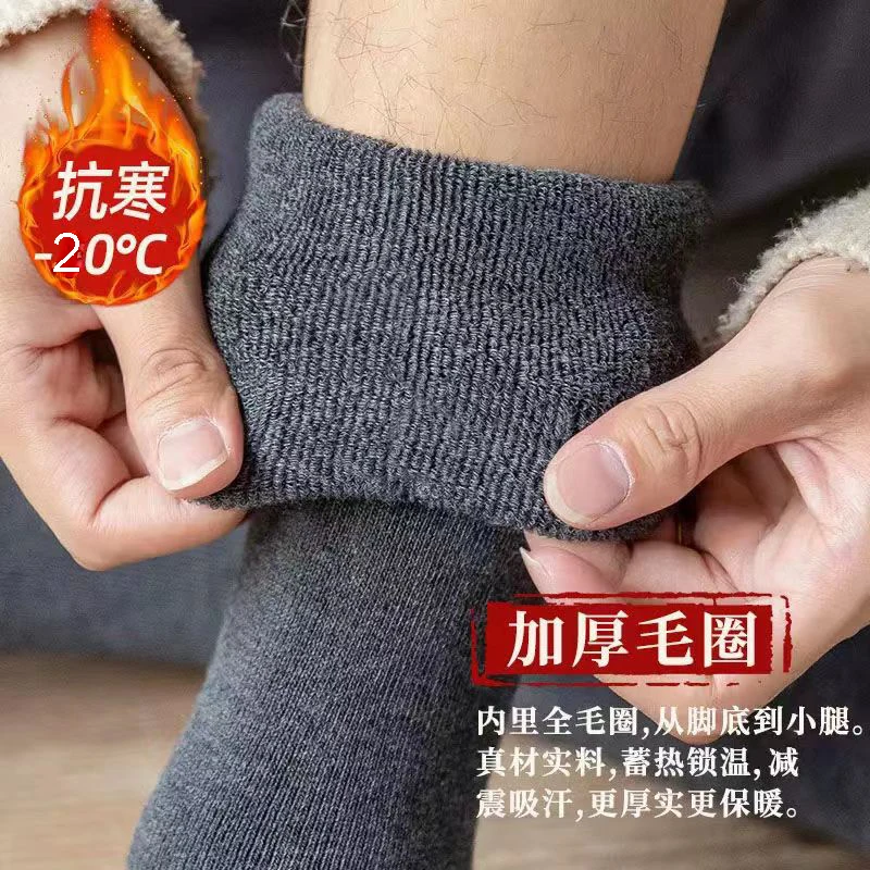 Winter Men's Knee Long Socks Wool Keep Warm Longer Stocking Compression Winter Terry Socks Cotton Thicken Cover Calf Sokken Gift