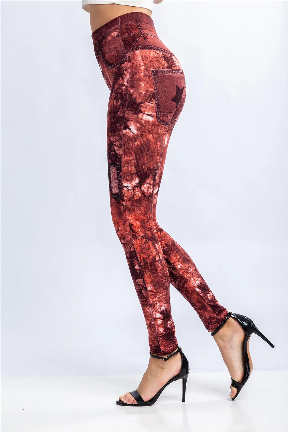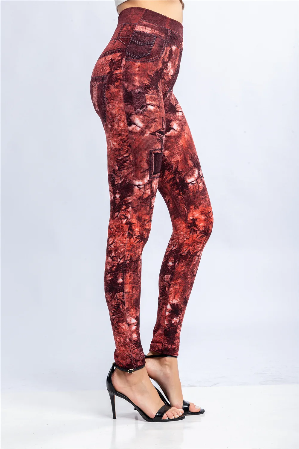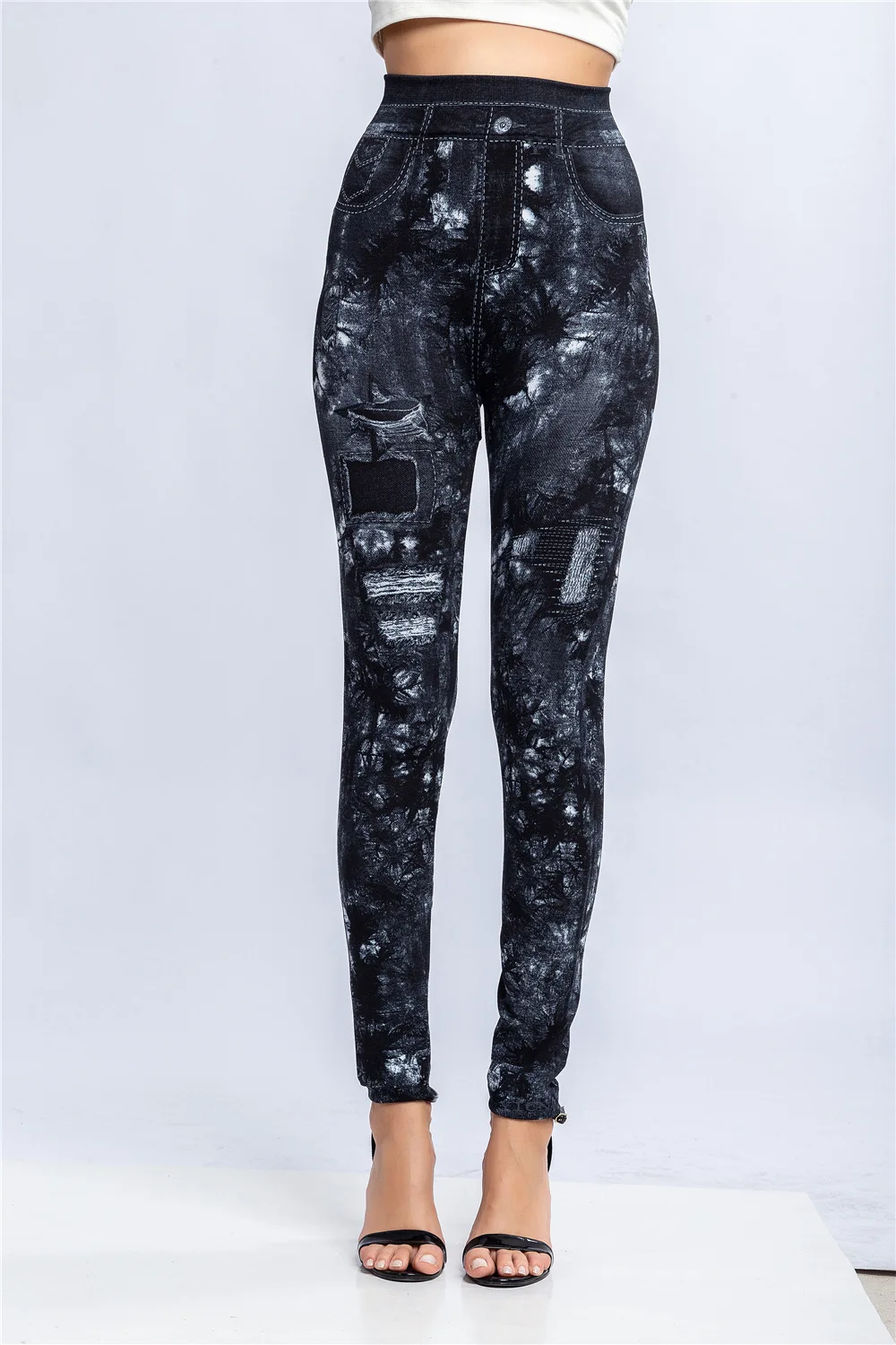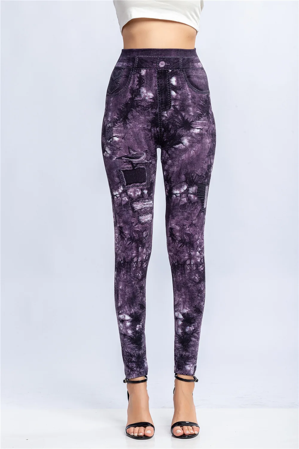 Women Print Imitation Denim Legggings Stretchy Slim Tights High Waist Hip Liftting Casul Pants Workout Running Gym Pants